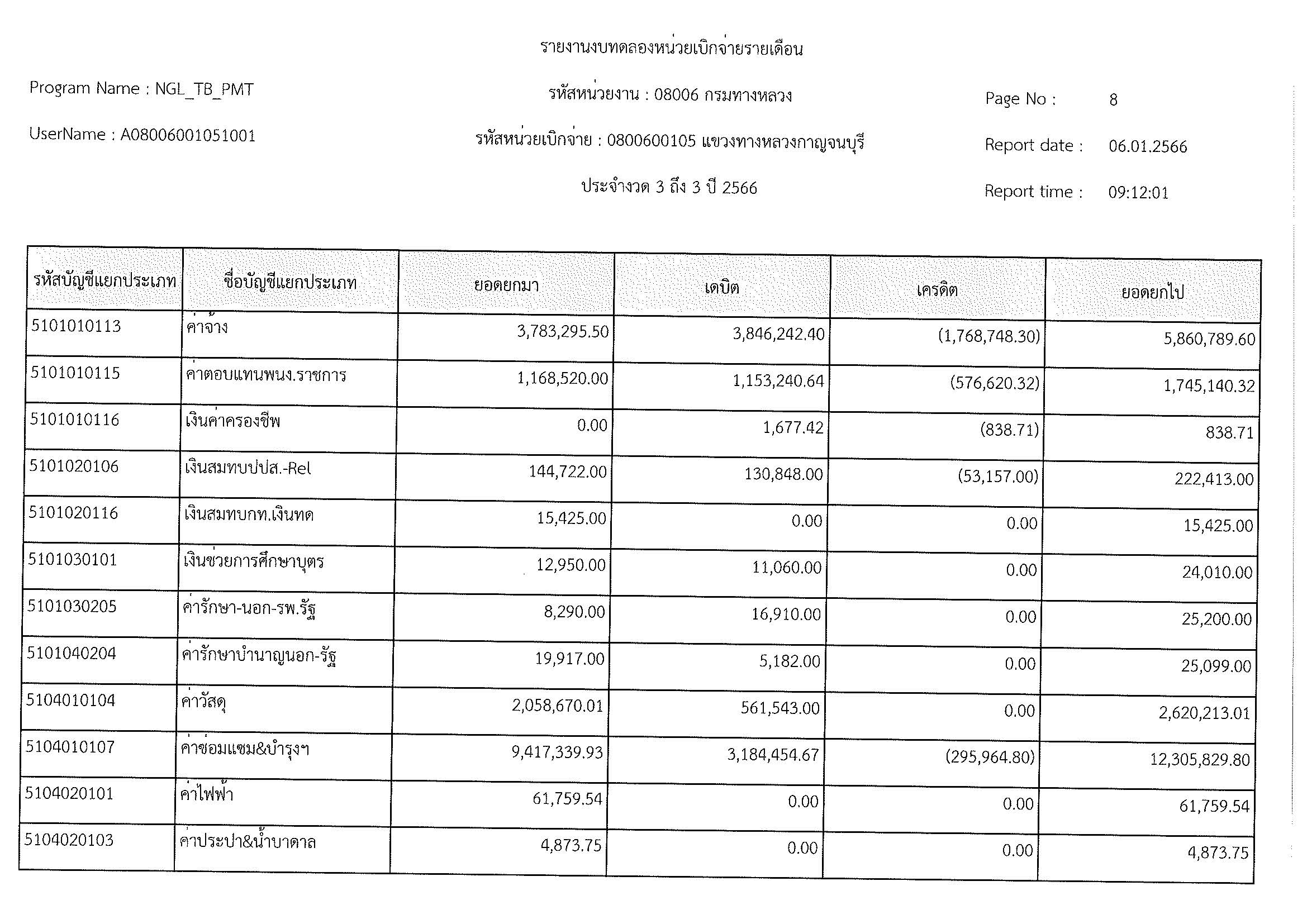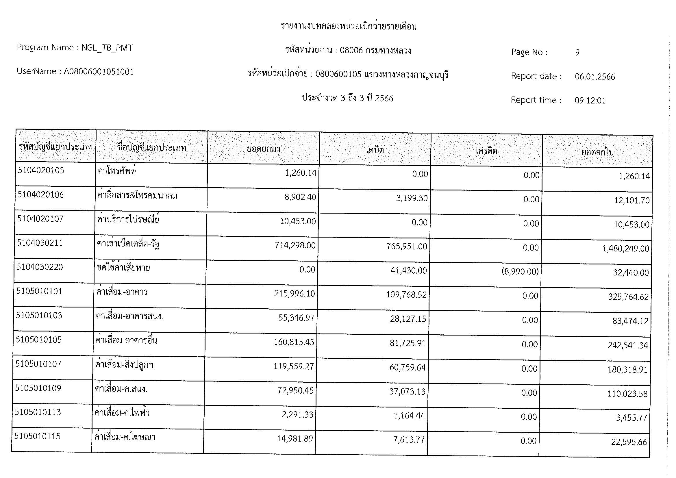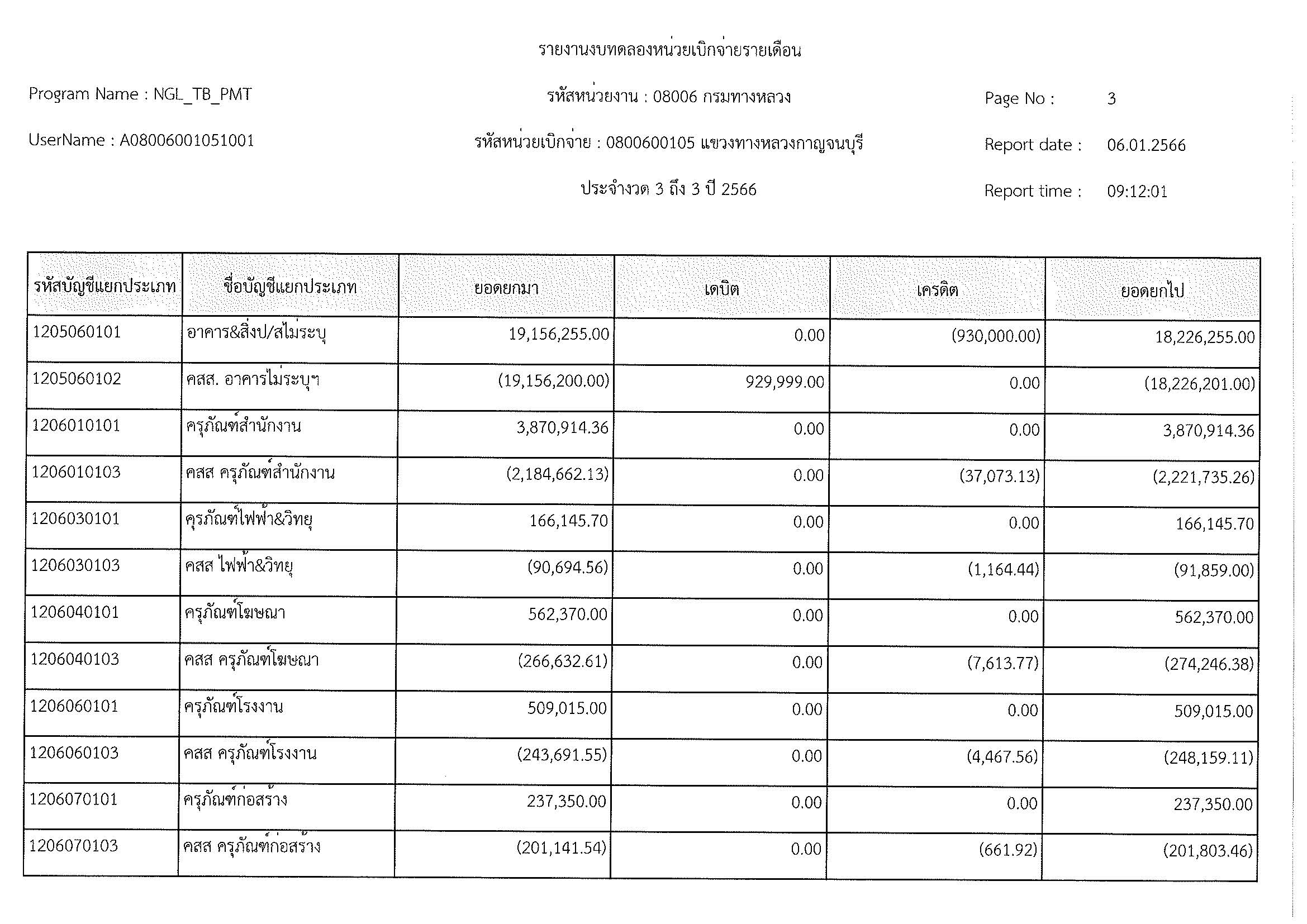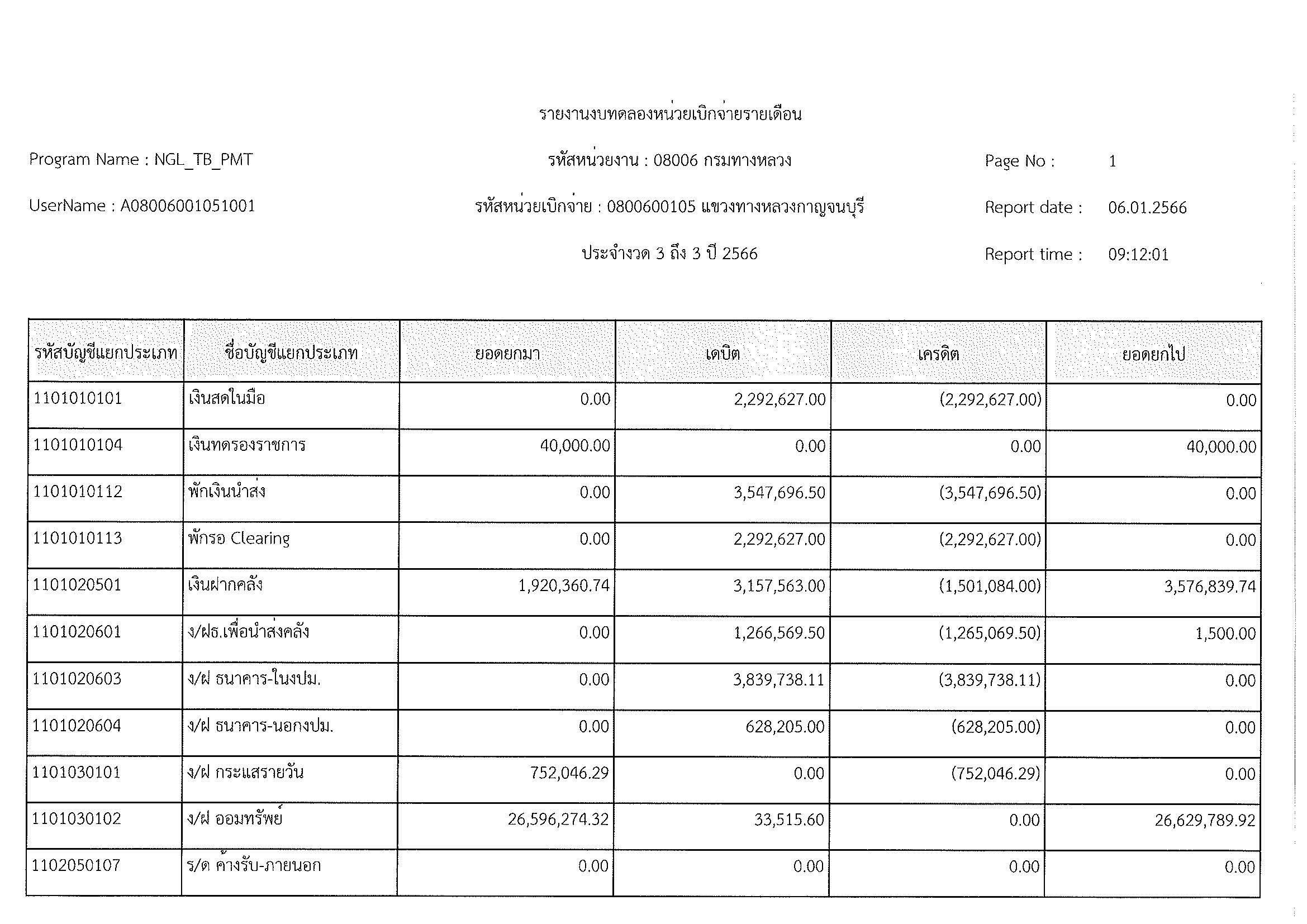 รายงานงบทดลองหน่วยเบิกจ่ายรายเดือน ประจำงวด 3 ถึง 3 ปี 2566