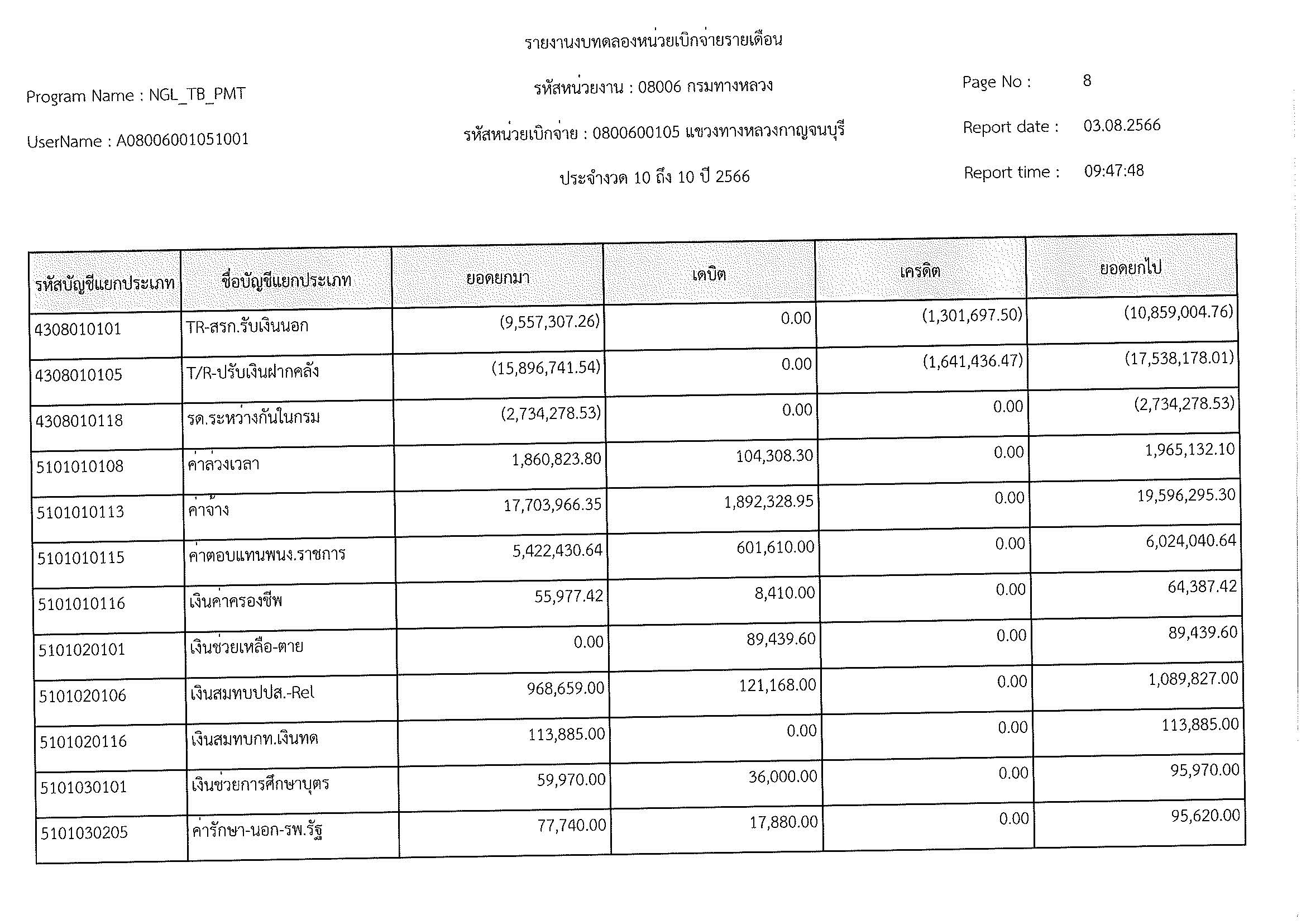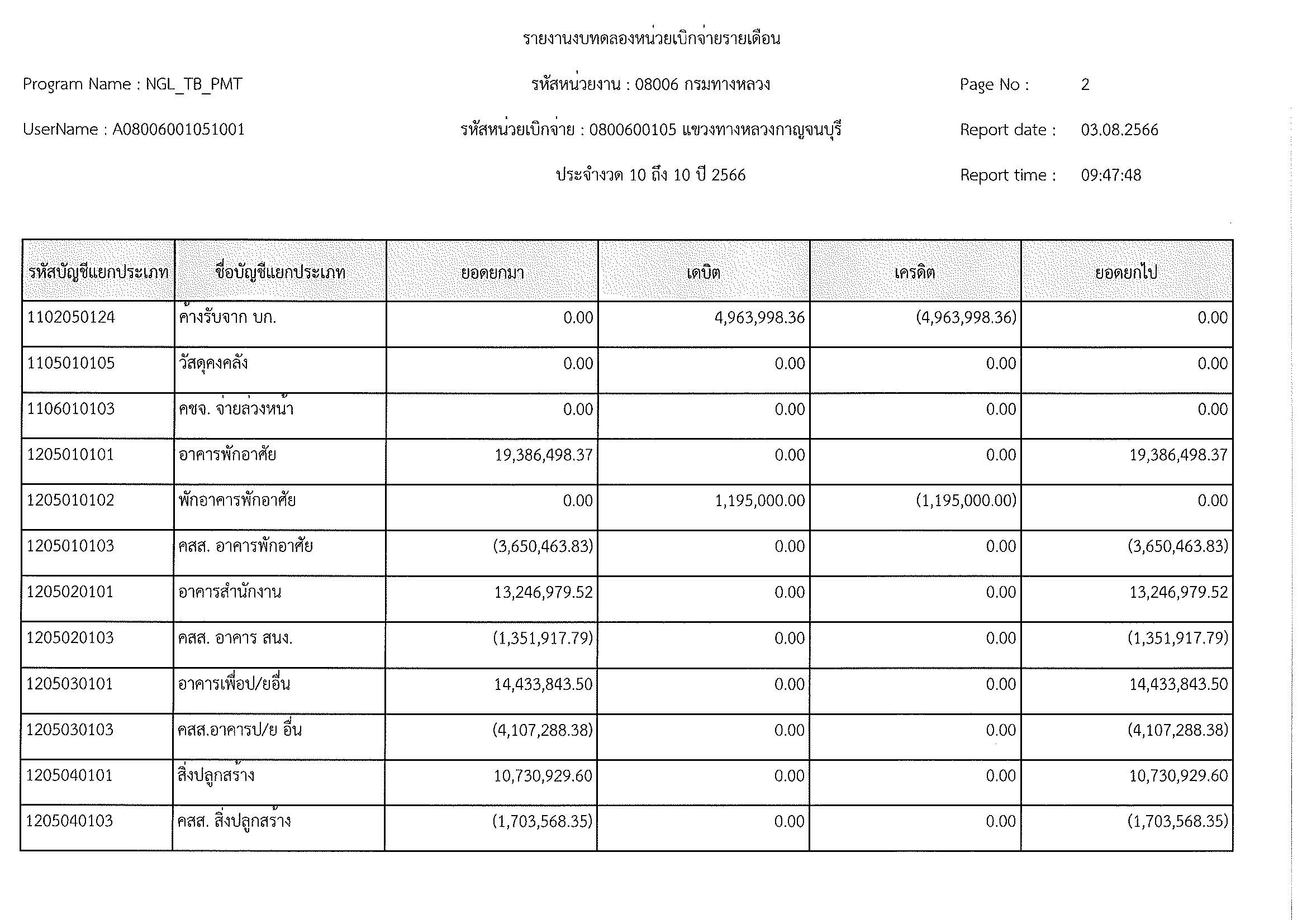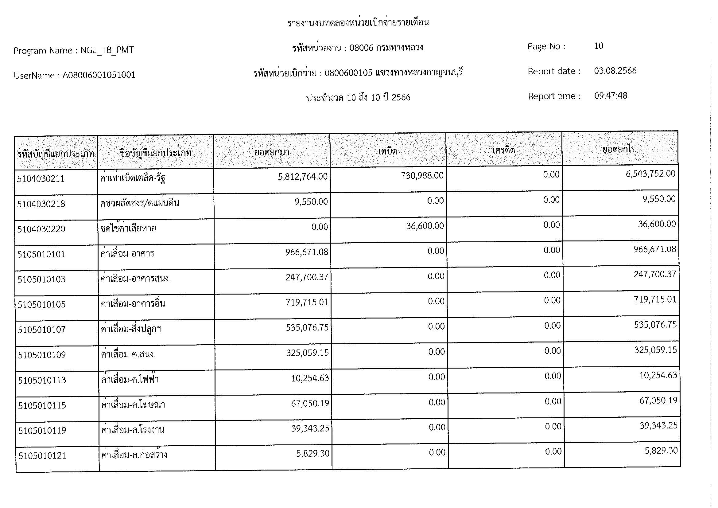 รายงานงบทดลองหน่วยเบิกจ่ายรายเดือน ประจำงวด 10 ประจำปีที่ 2566