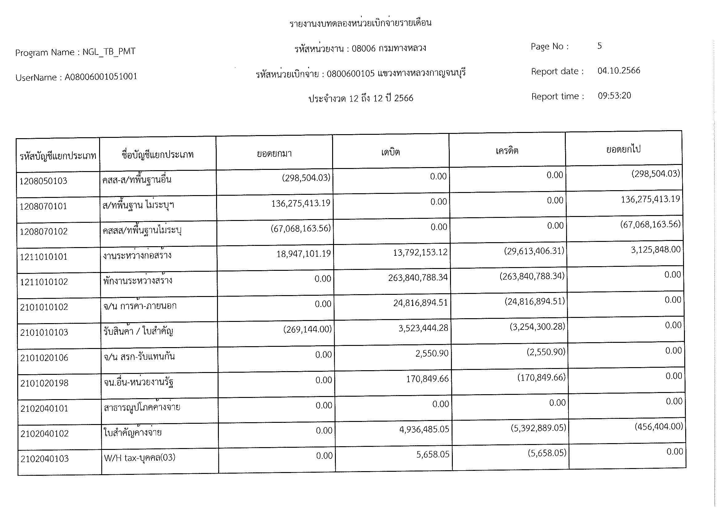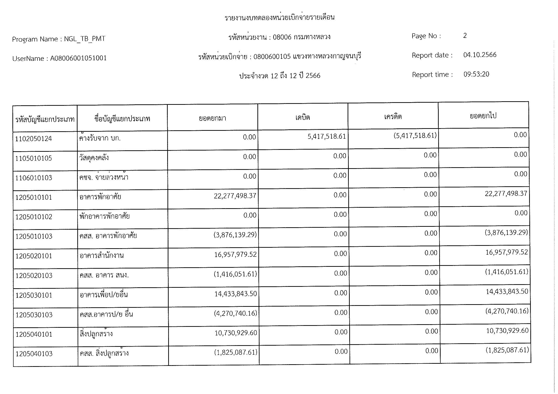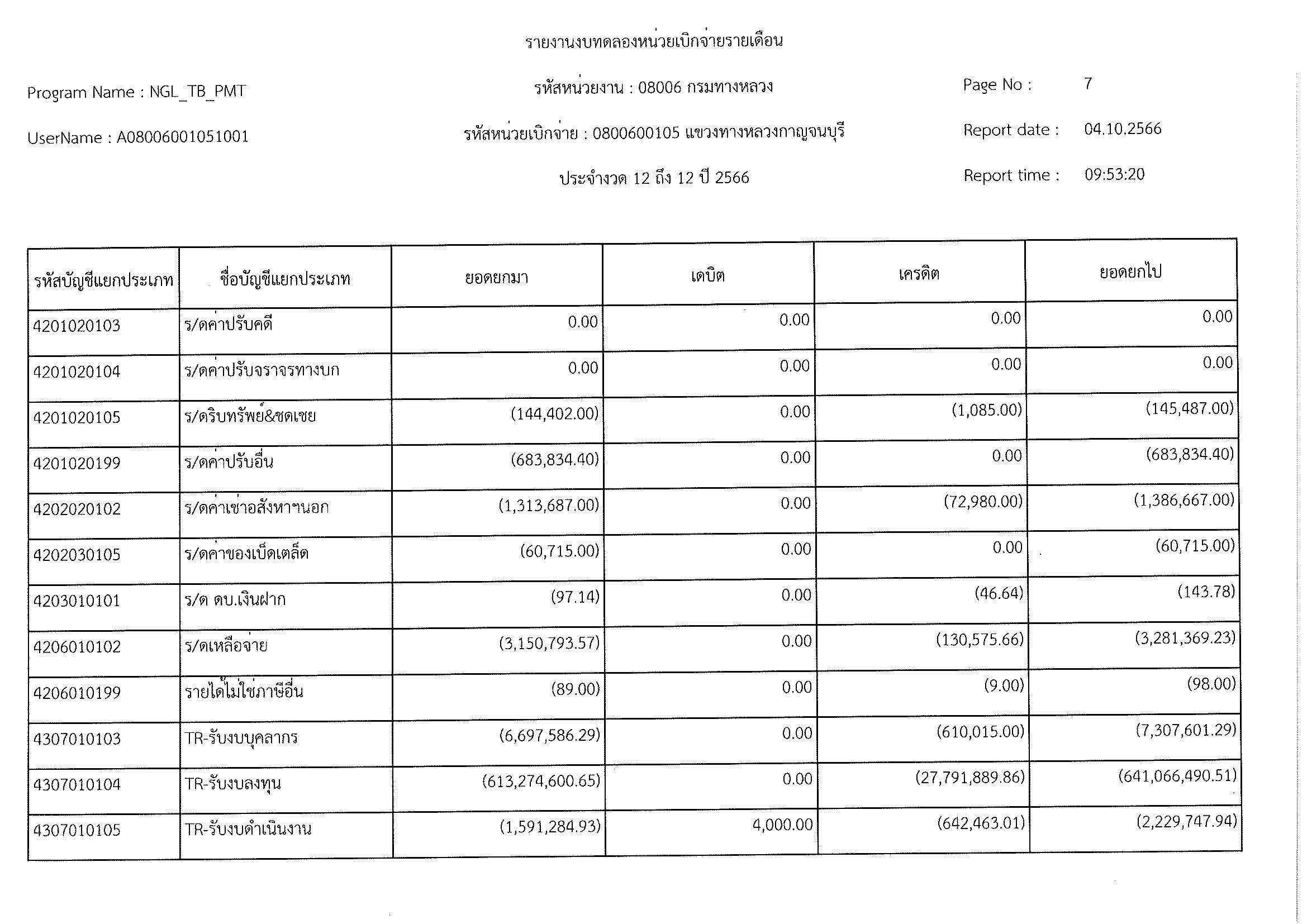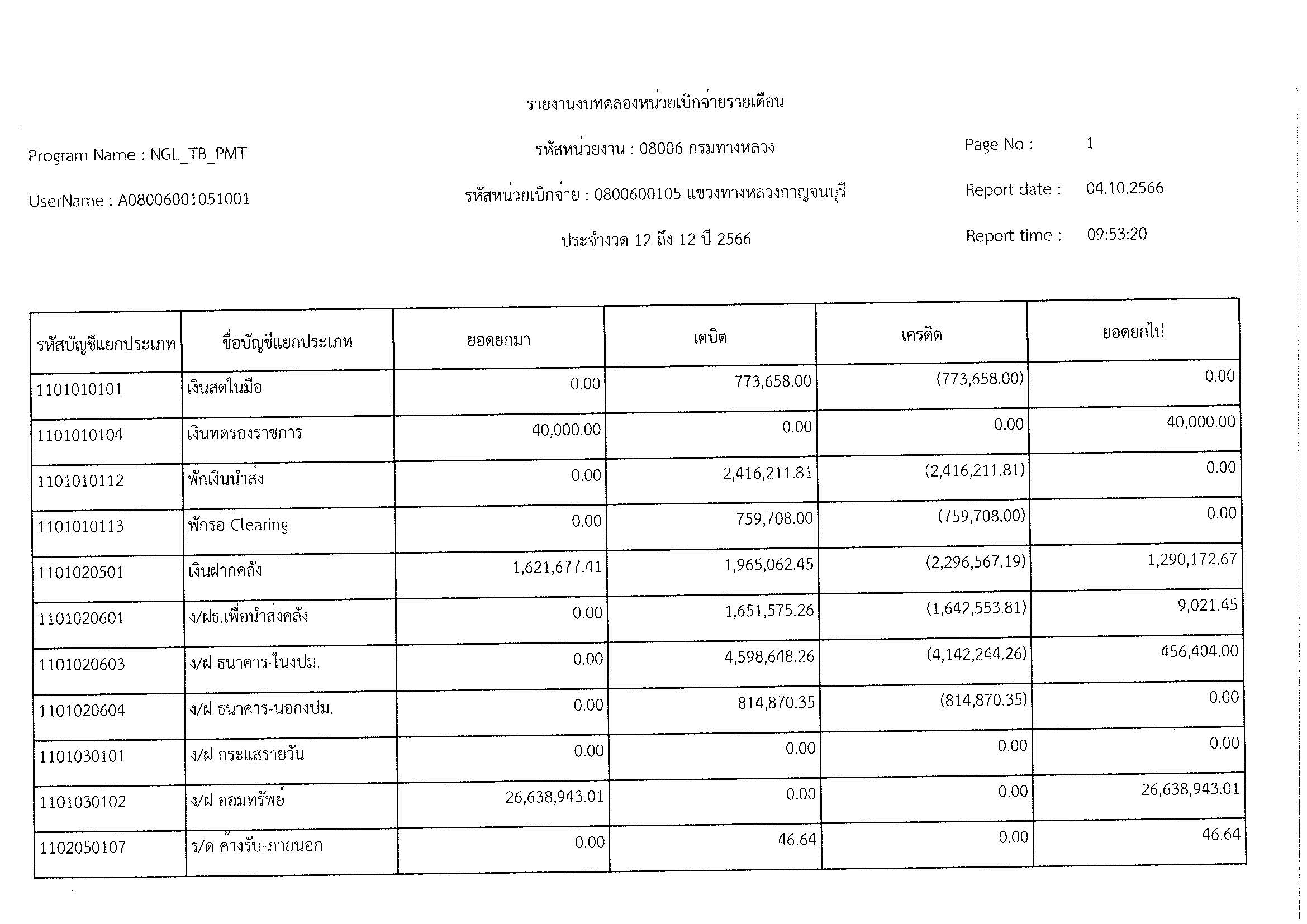 รายงานงบทดลองหน่วยเบิจจ่ายรายเดือน