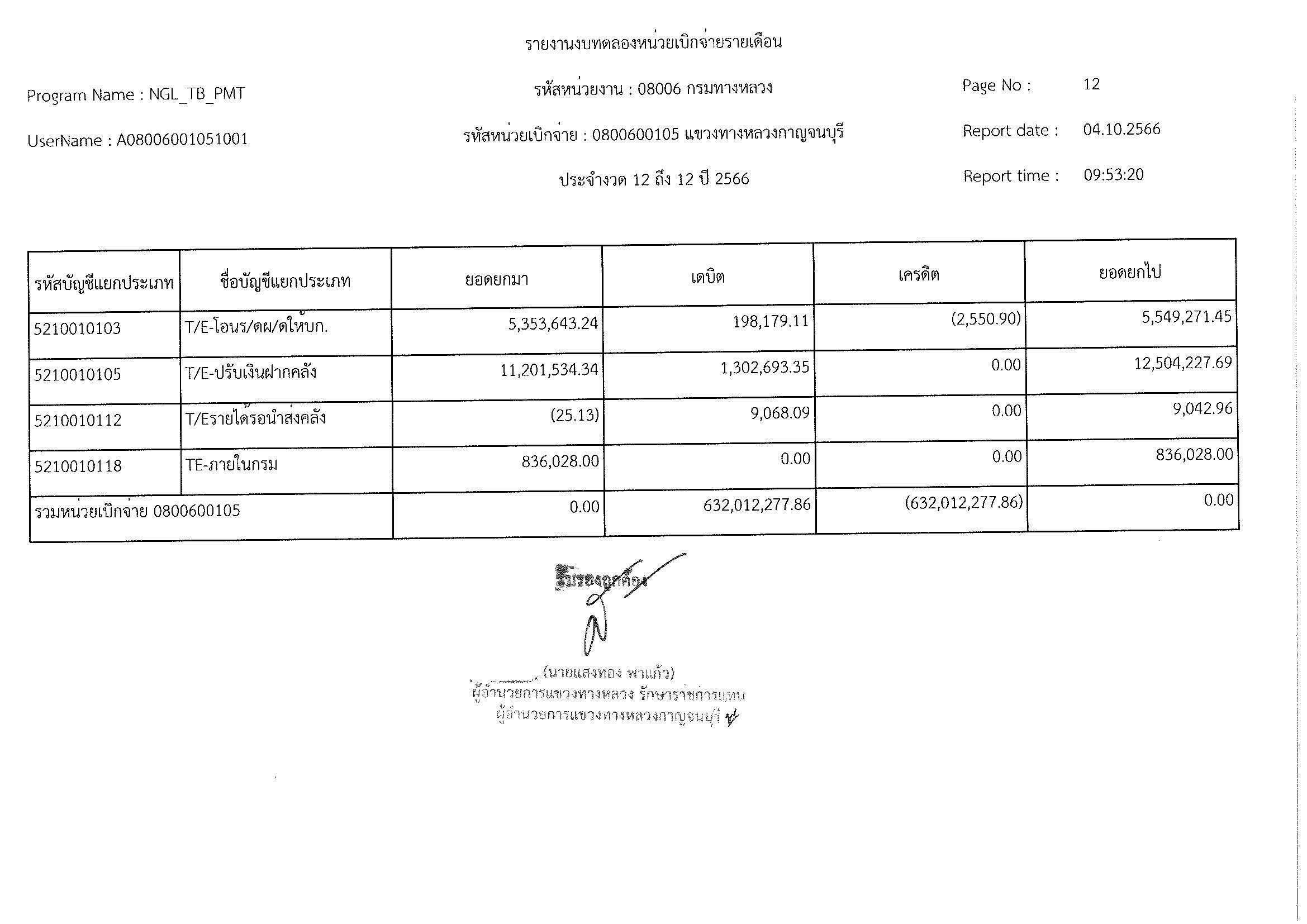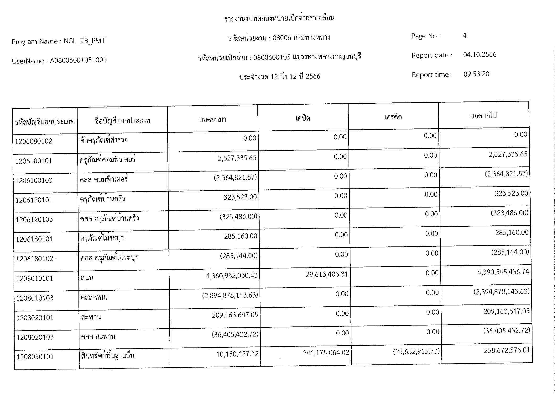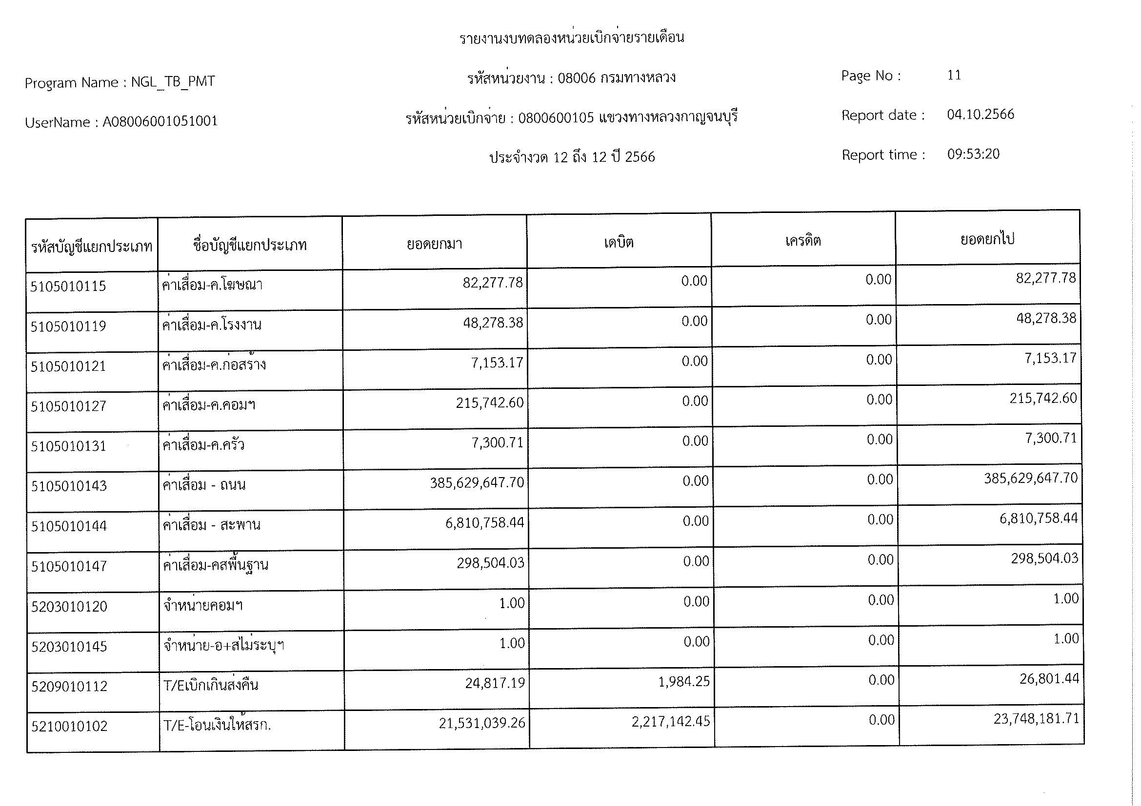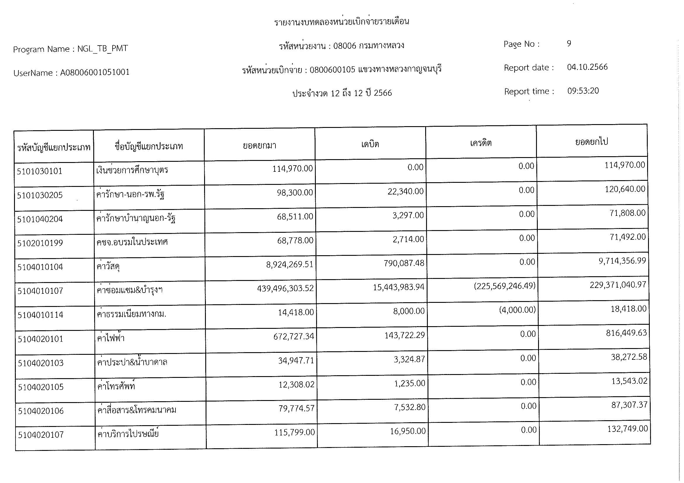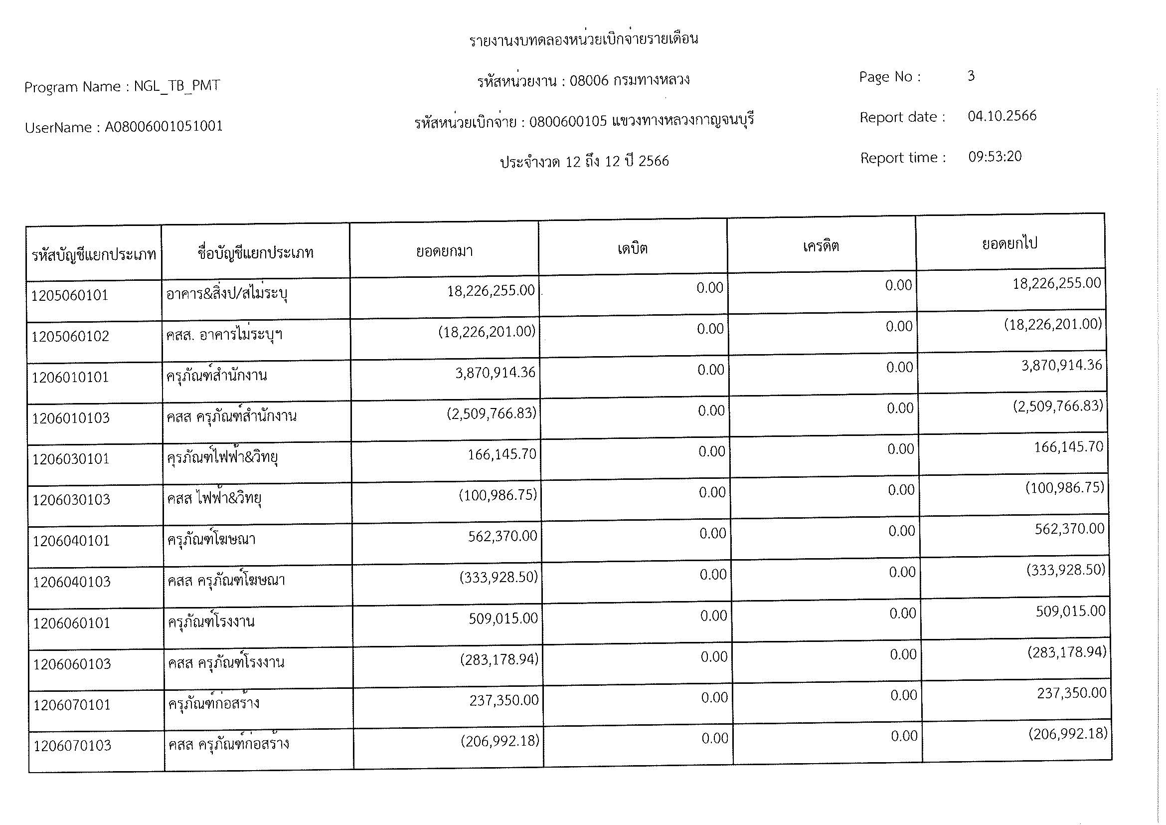 รายงานงบทดลองหน่วยเบิจจ่ายรายเดือน