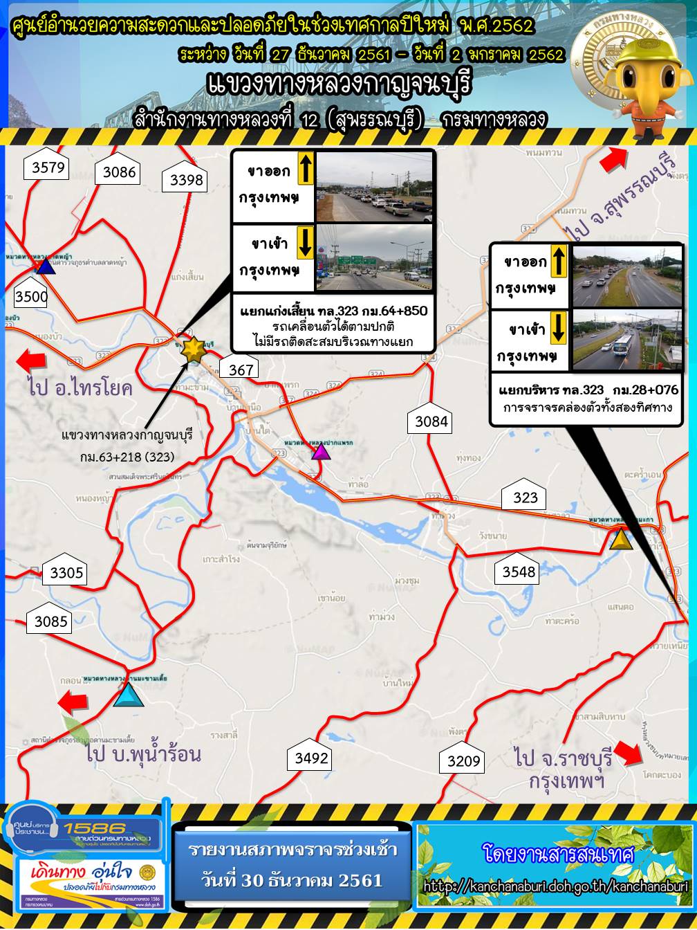 รายงานสภาพจราจรรอบเช้าวันที่ 30 ธันวาคม 2561