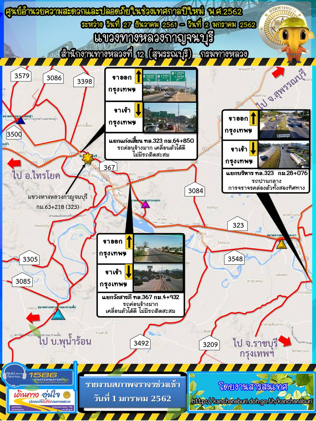 รายงานสภาพจราจรรอบเช้า วันที่ 1 มกราคม 2562