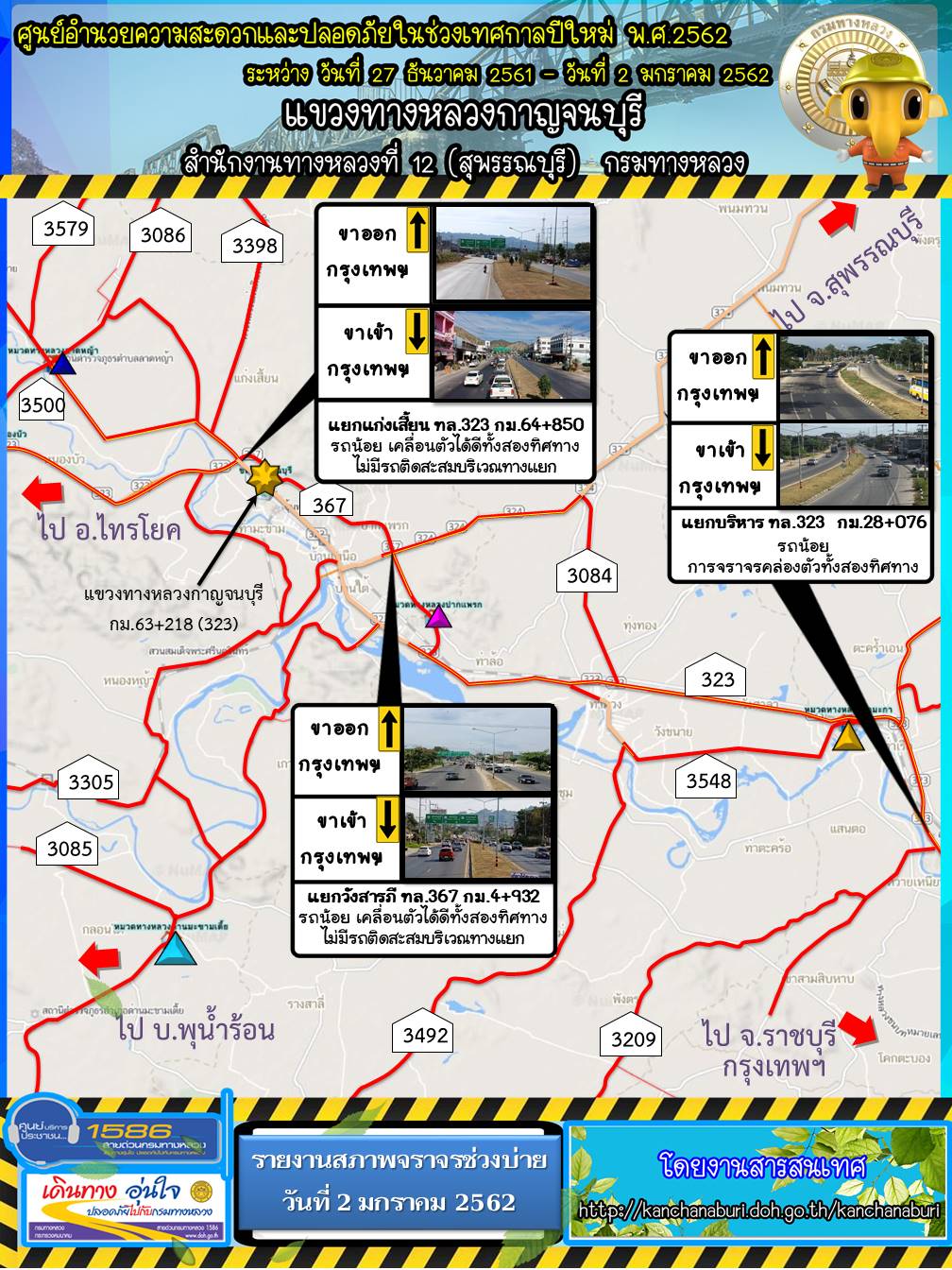 รายงานสภาพจราจรรอบบ่าย วันที่ 2 มกราคม 2562