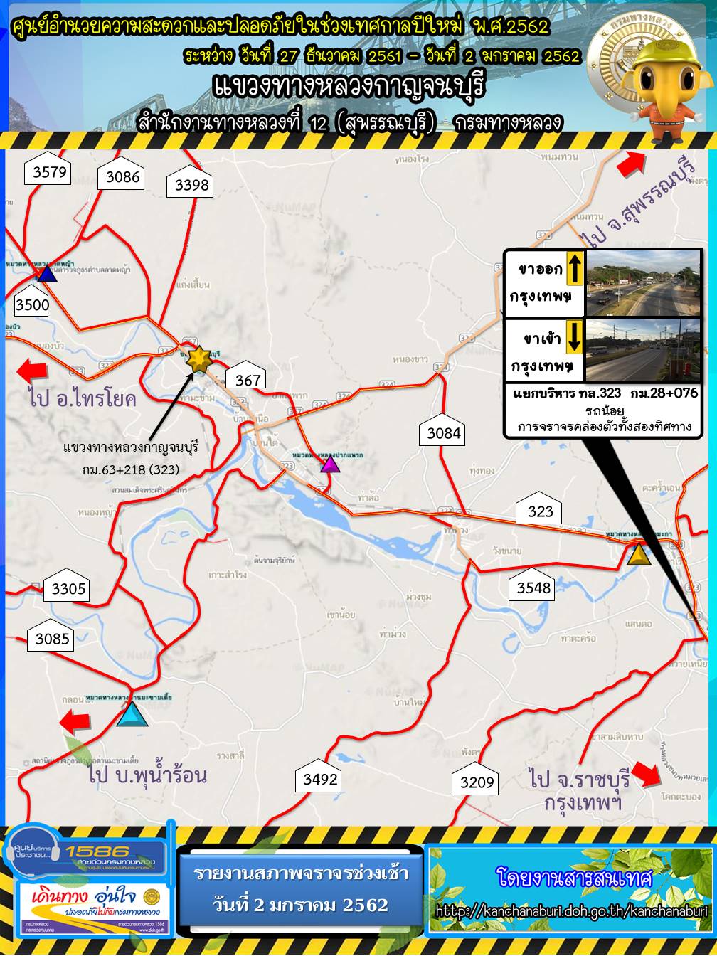 รายงานสภาพจราจรรอบเช้า วันที่ 2 มกราคม 2562