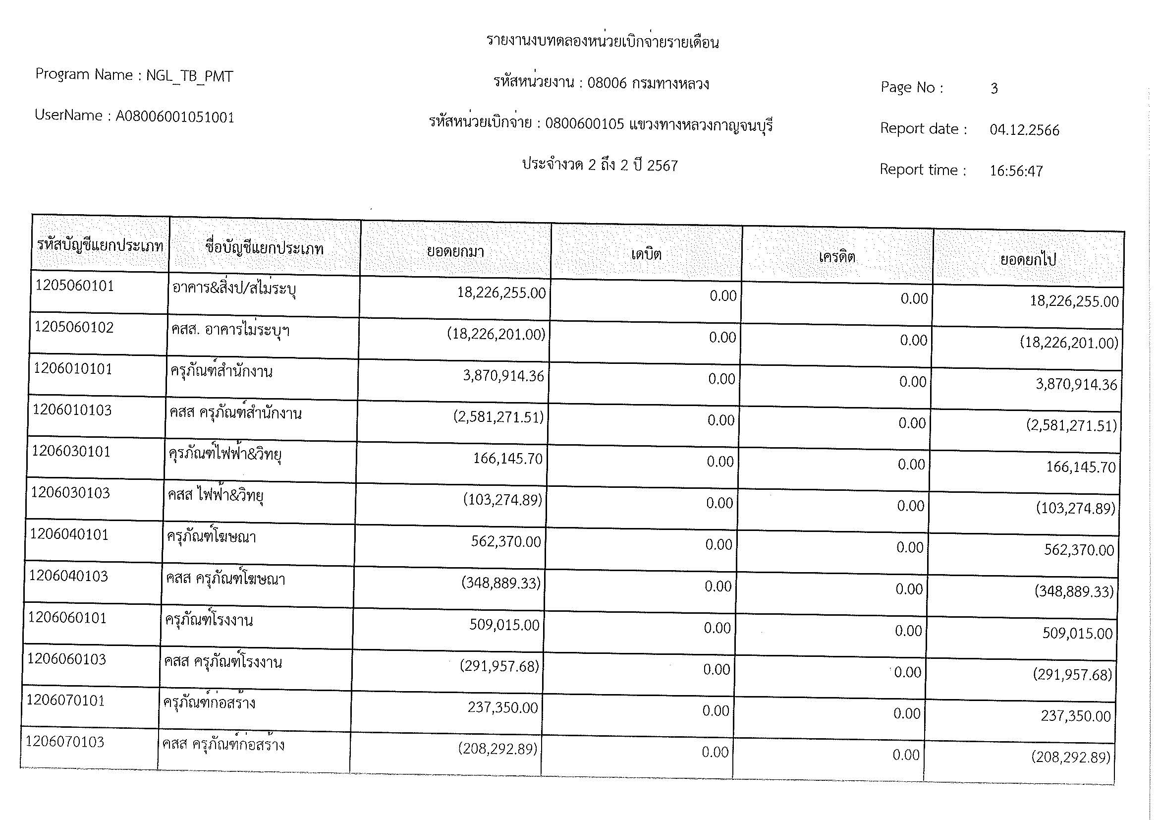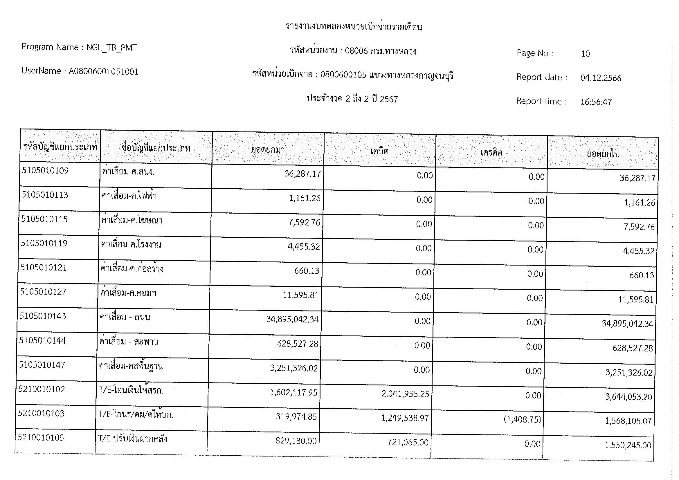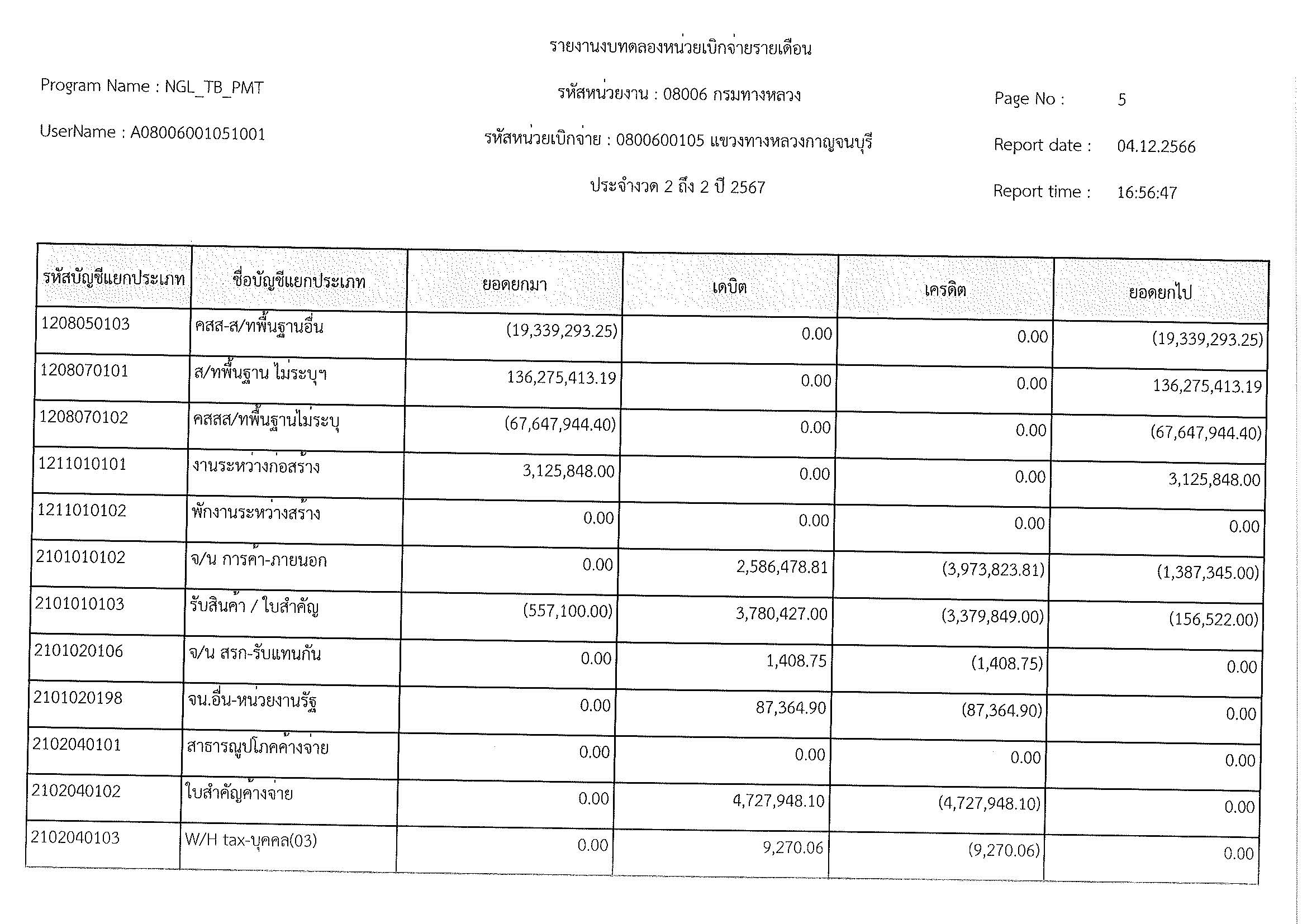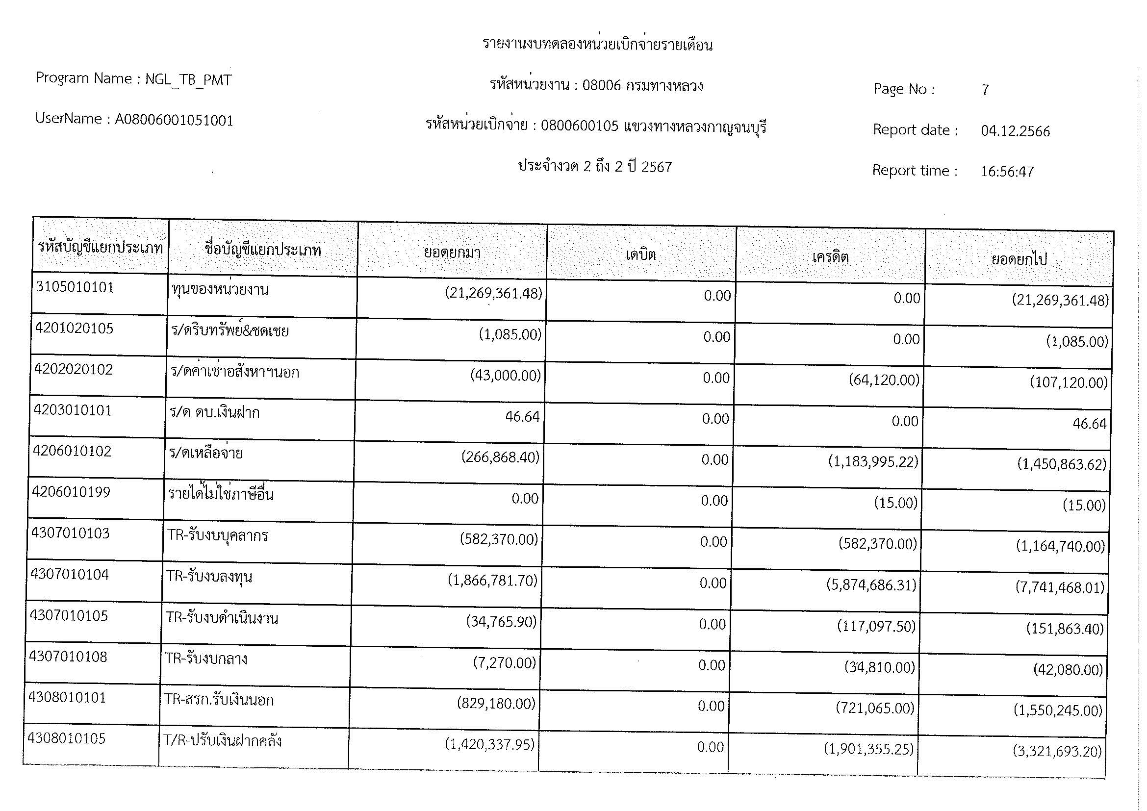รายงานงบทดลองหน่วยเบิจจ่ายรายเดือน