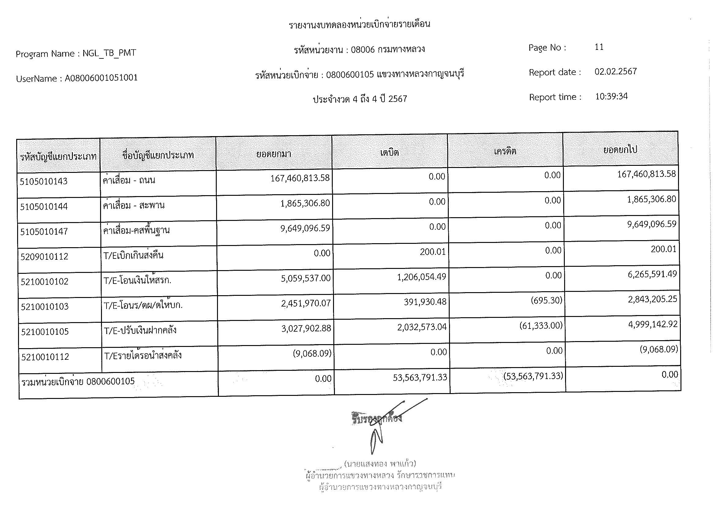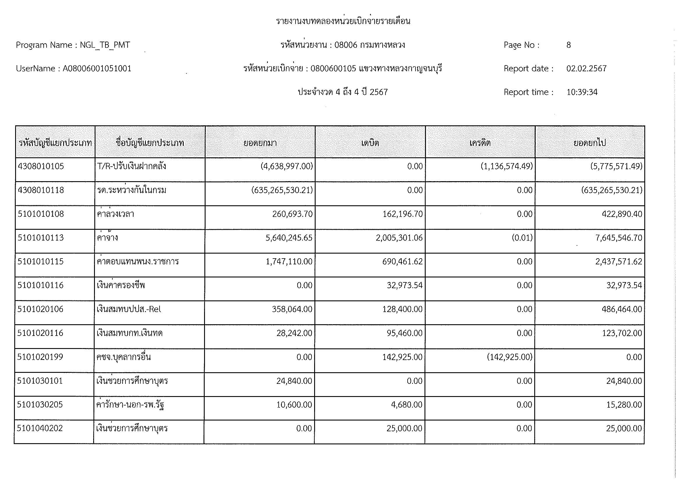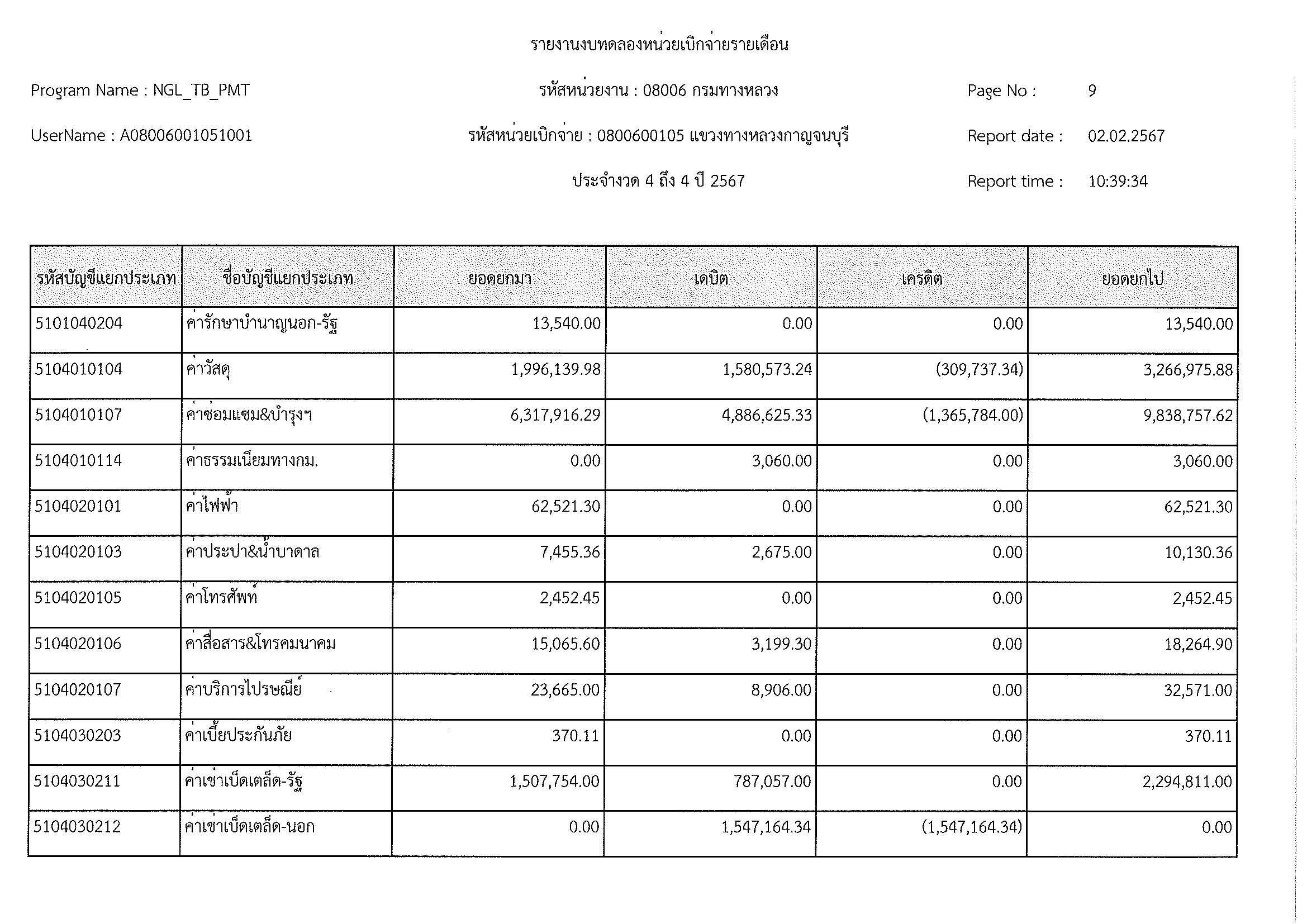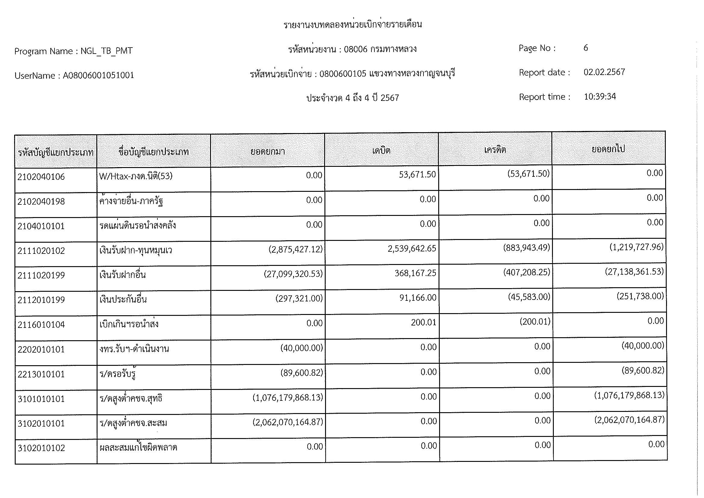 ข้อมูลข่าว : งบทดลอง ม.ค. 2567