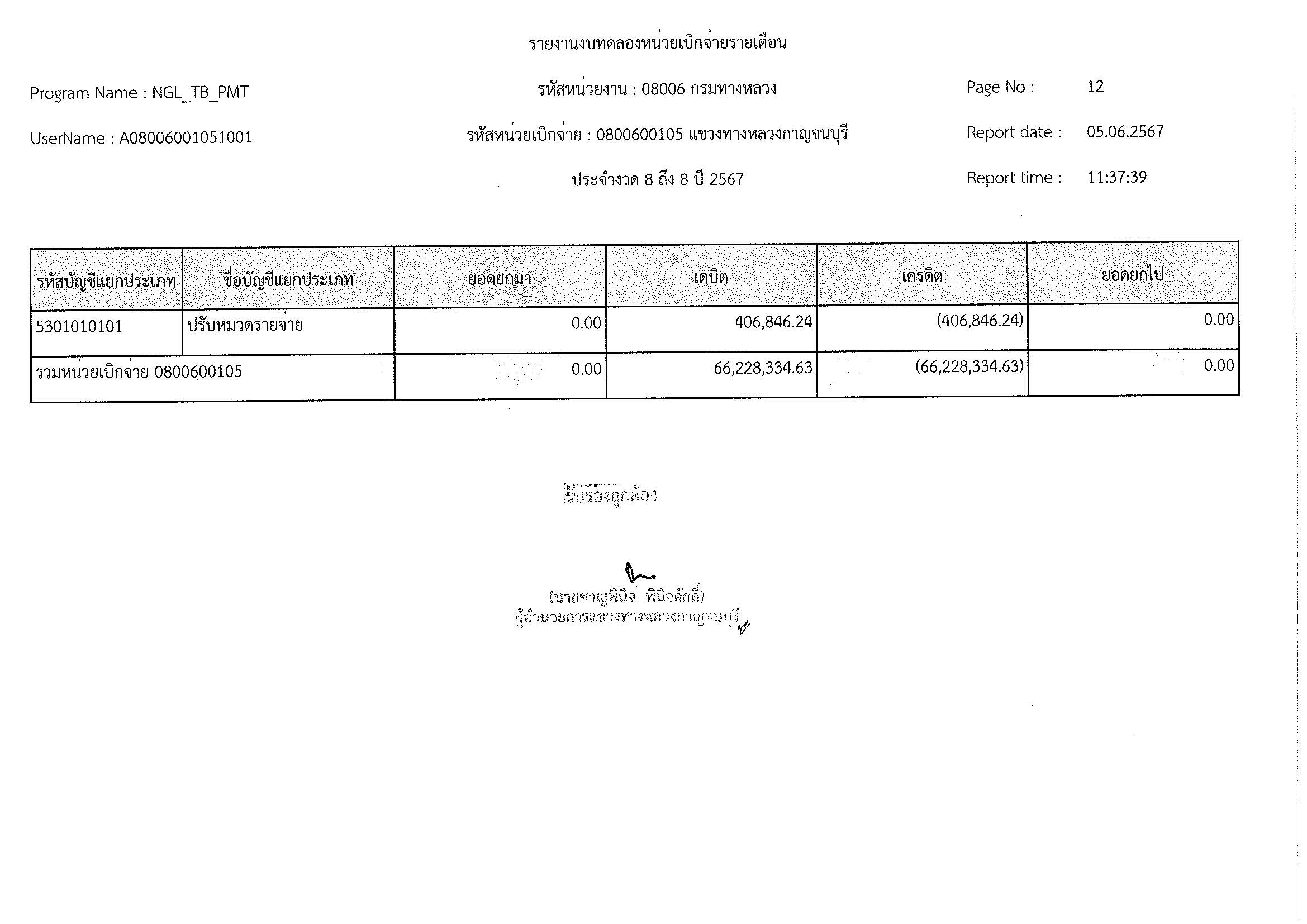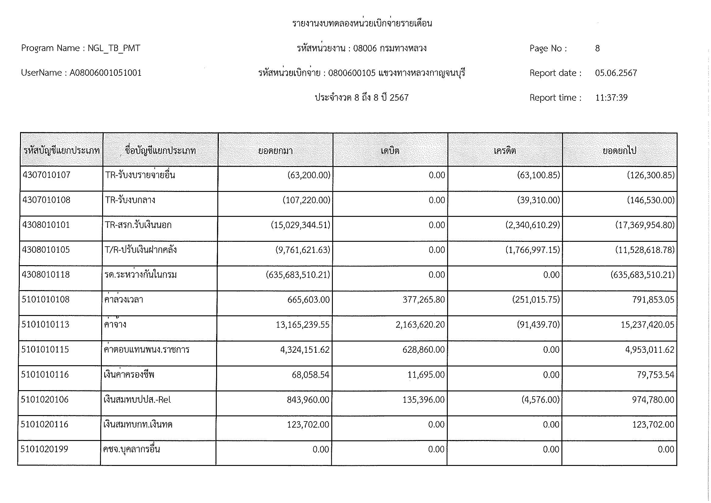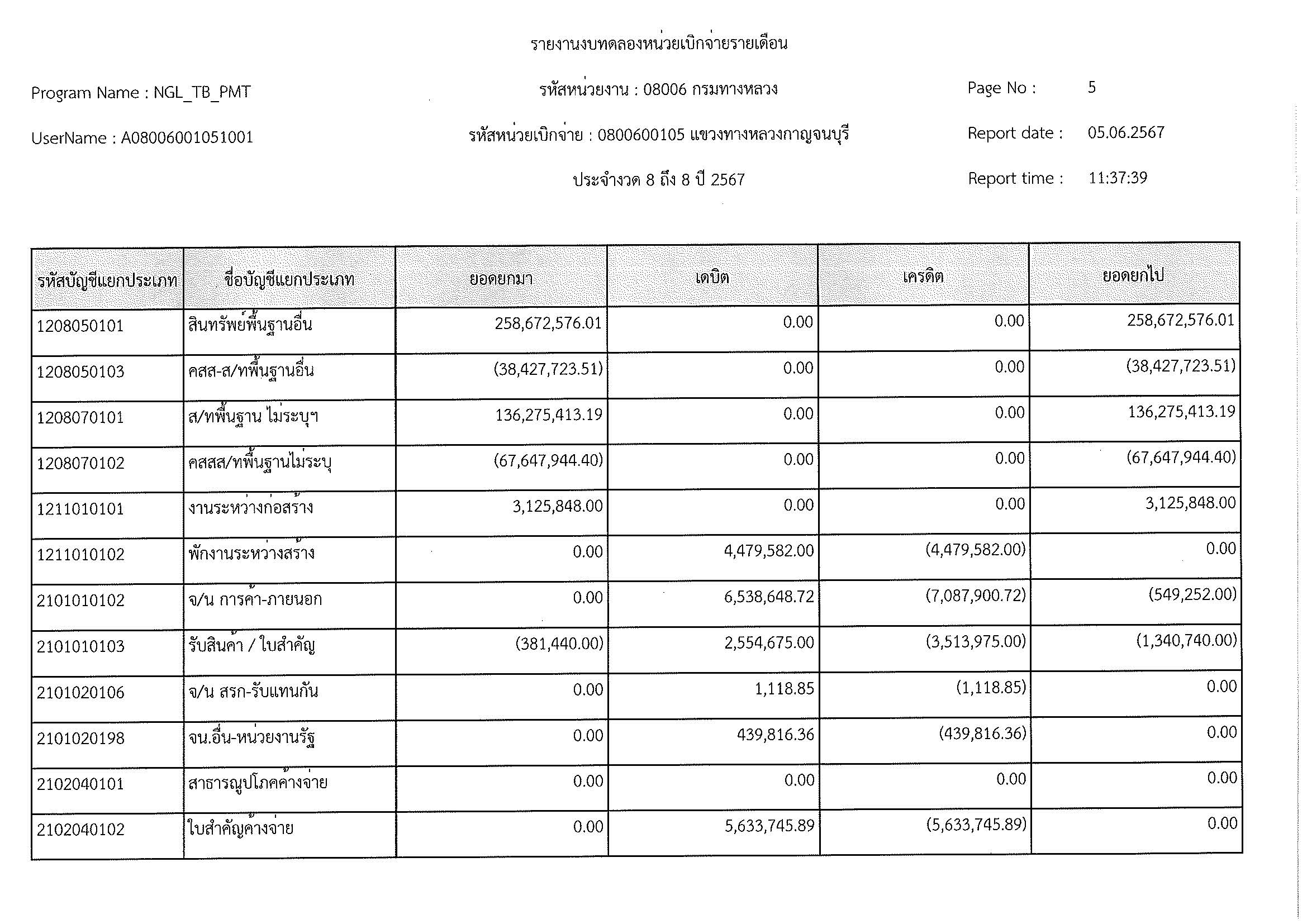 งบทดลองประจำเดือน พฤษภาคม 2567