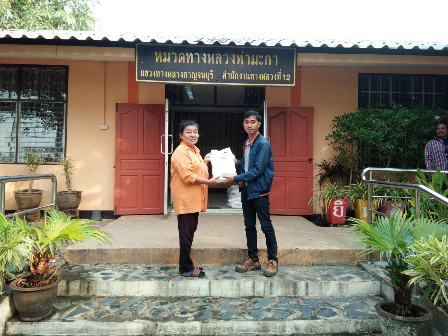 นายเผ่าพงษ์ ดอนสมพงษ์ หมวดทางหลวงท่ามะกาทำการแจกข้าวสารจากท่าน ผู้อำนวยการสำนักงานทางหลวงที่ 12 เพื่อเป็นขวัญกำลังใจในการทำงานให้กับเจ้าหน้าที่หมวดทางหลวงท่ามะกา ทุกท่าน