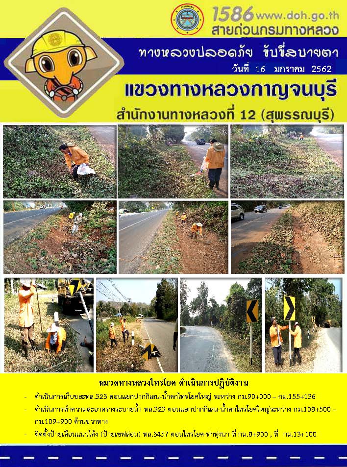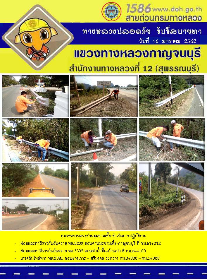 ข้อมูลข่าว : งานอำนวยความสะดวกและความปลอดภัย โดยแขวงทางหลวงกาญจนบุรี 17/01/62