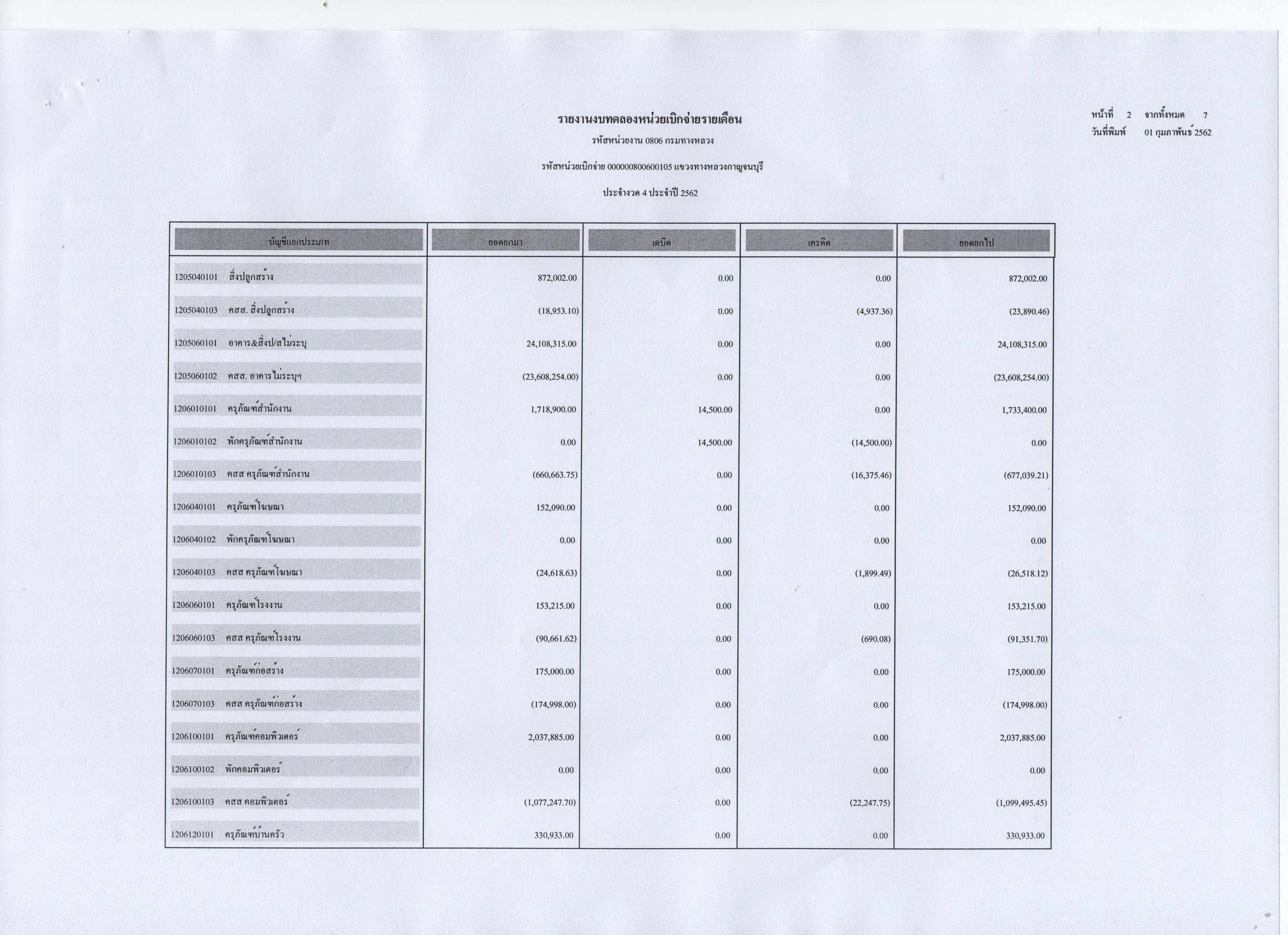 รายงานงบทดลองหน่วยเบิกจ่ายรายเดือน ประจำงวดที่ 4 ประจำปี 2562