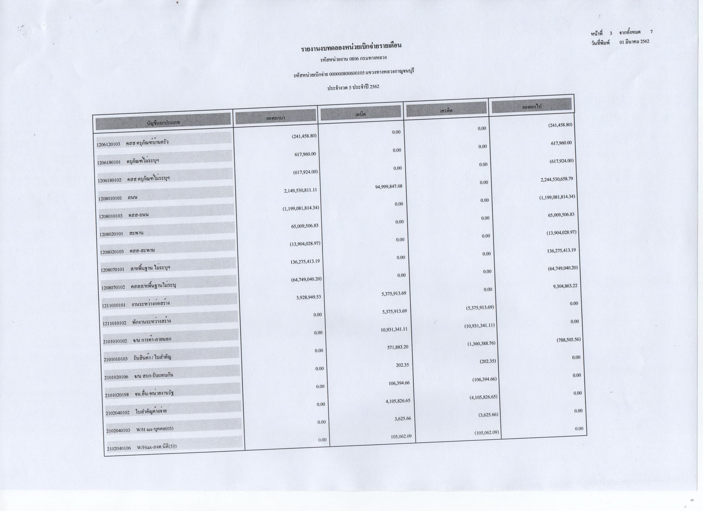 รายงานงบทดลองหน่วยเบิกจ่ายรายเดือน ประจำงวดที่ 5 ประจำปี 2562