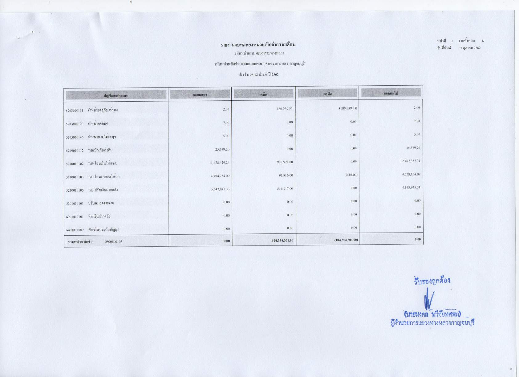 รายงานงบทดลองหน่วยเบิกจ่ายรายเดือน ประจำงวดที่ 12 ประจำปี 2562