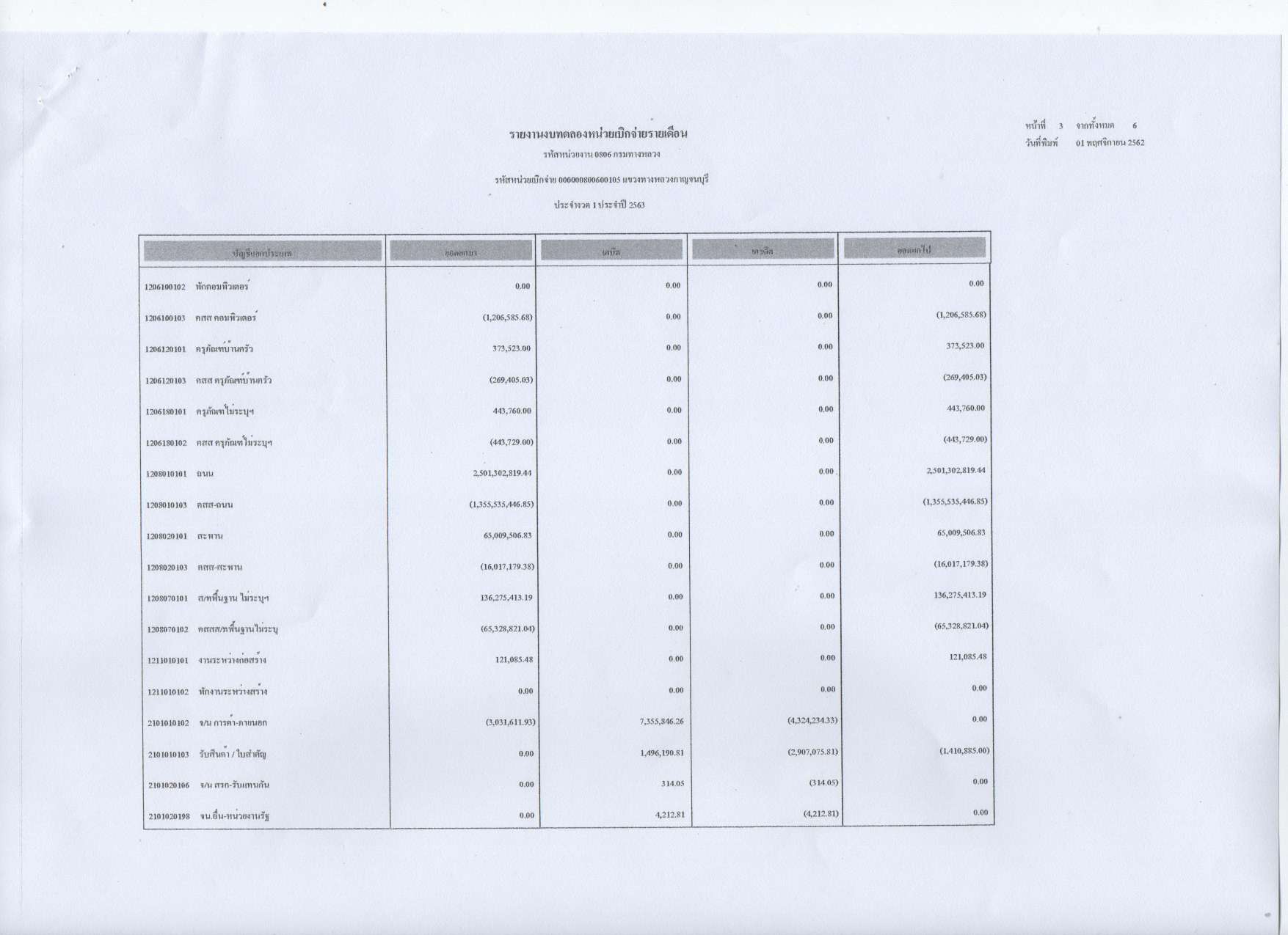 รายงานงบทดลองหน่วยเบิกจ่ายรายเดือน ประจำงวดที่ 1 ประจำปีที่ 2563