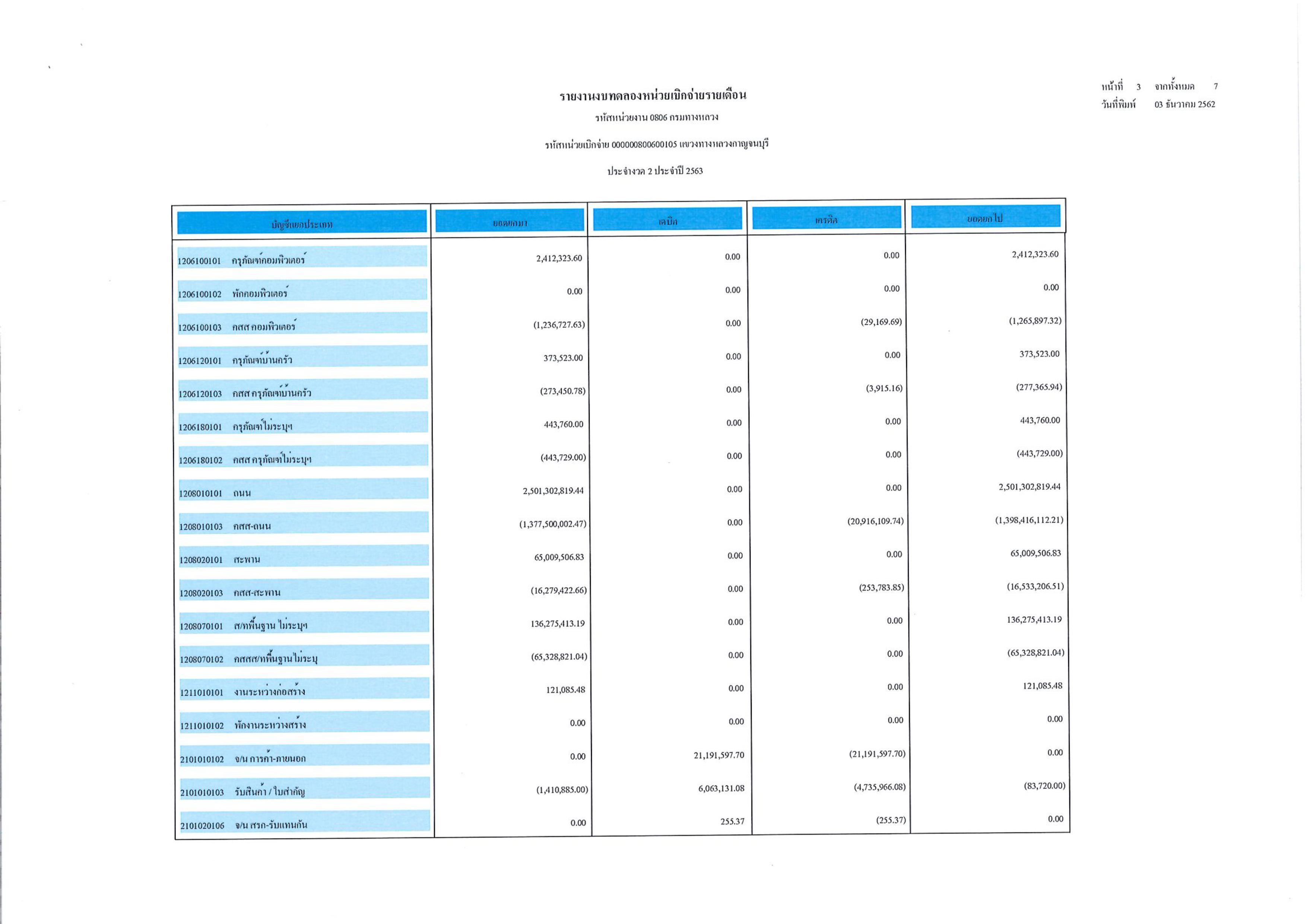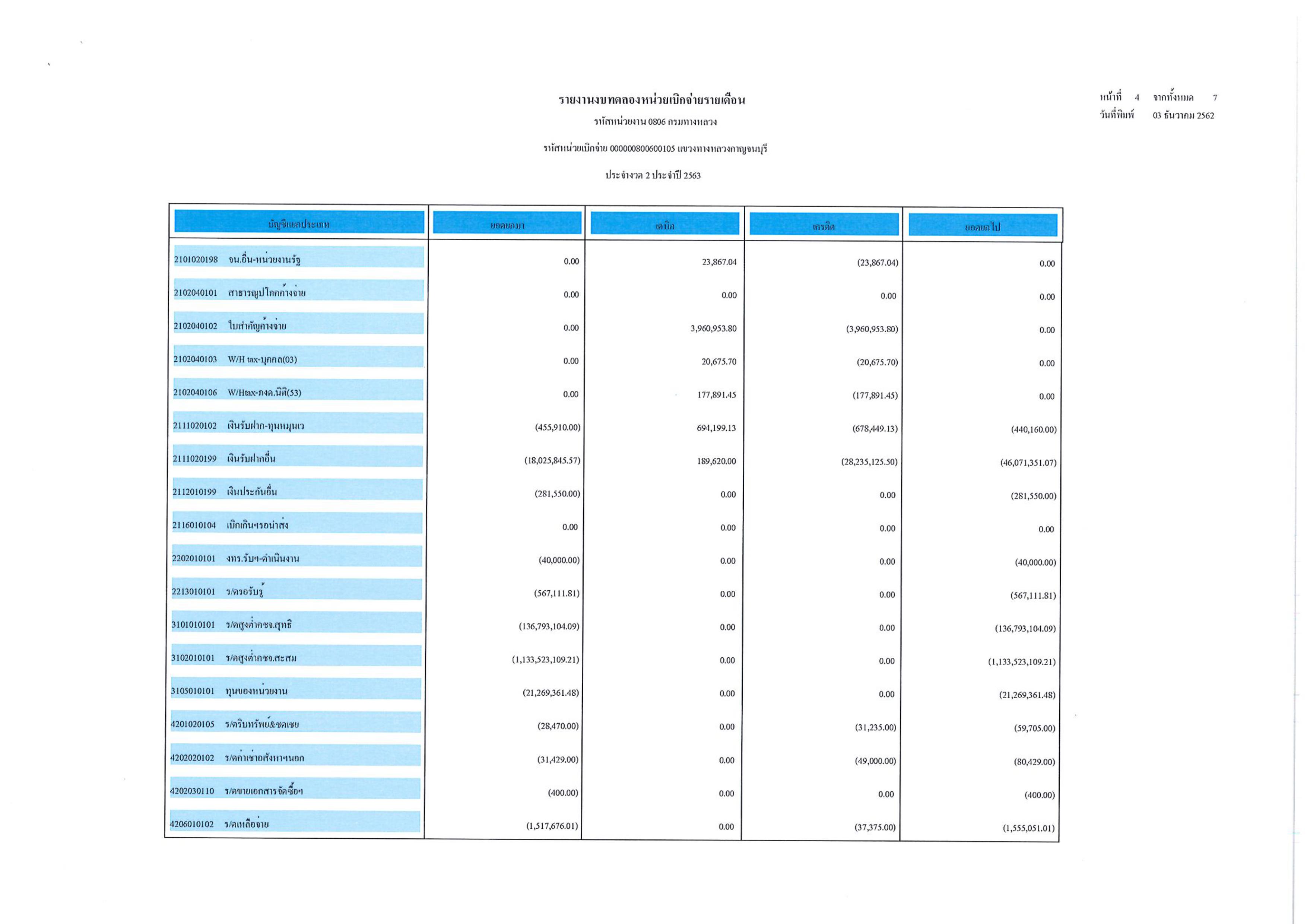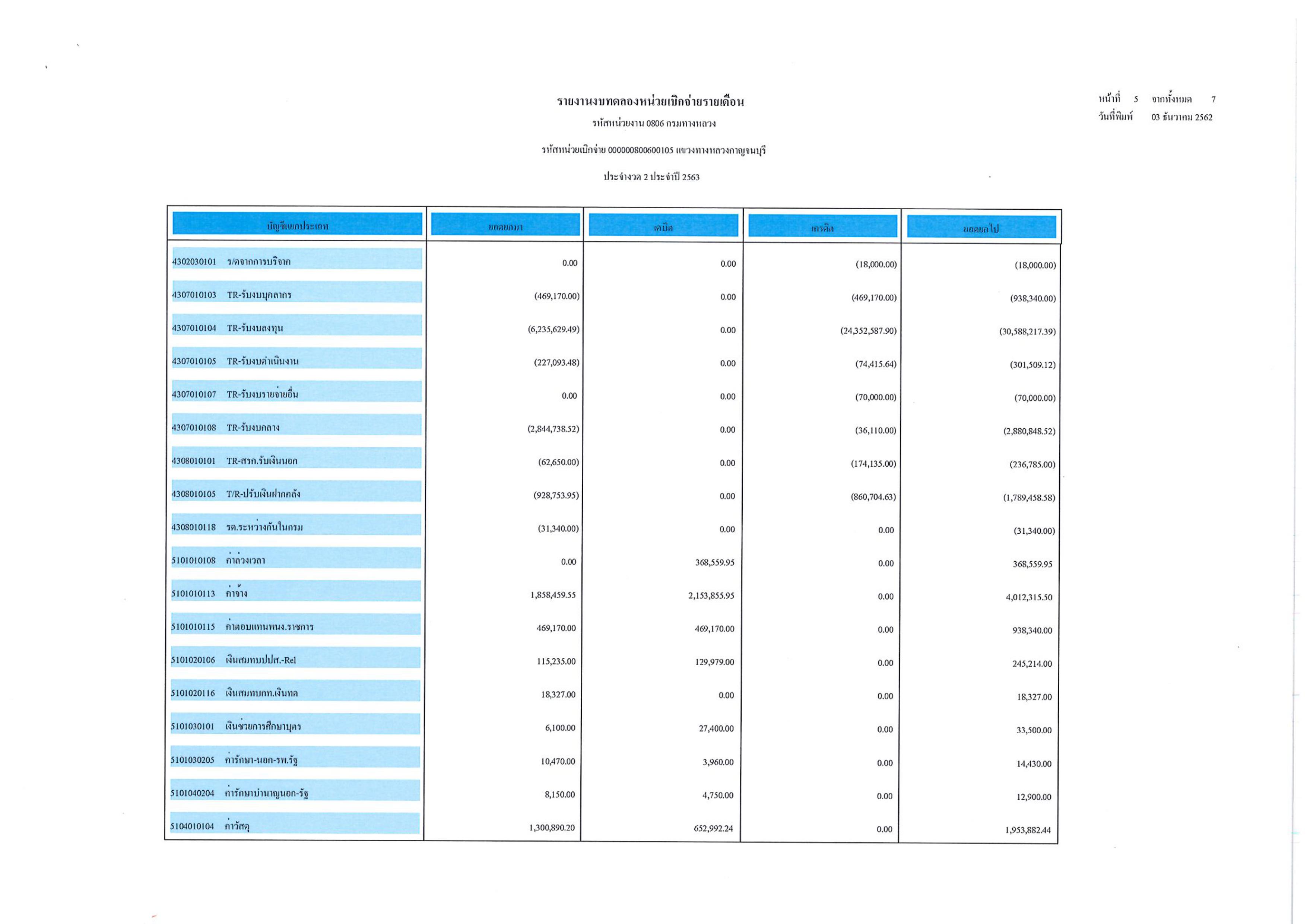 ข้อมูลข่าว : รายงานงบทดลองหน่วยเบิกจ่ายรายเดือน ประจำงวดที่ 2 ประจำปี 2563