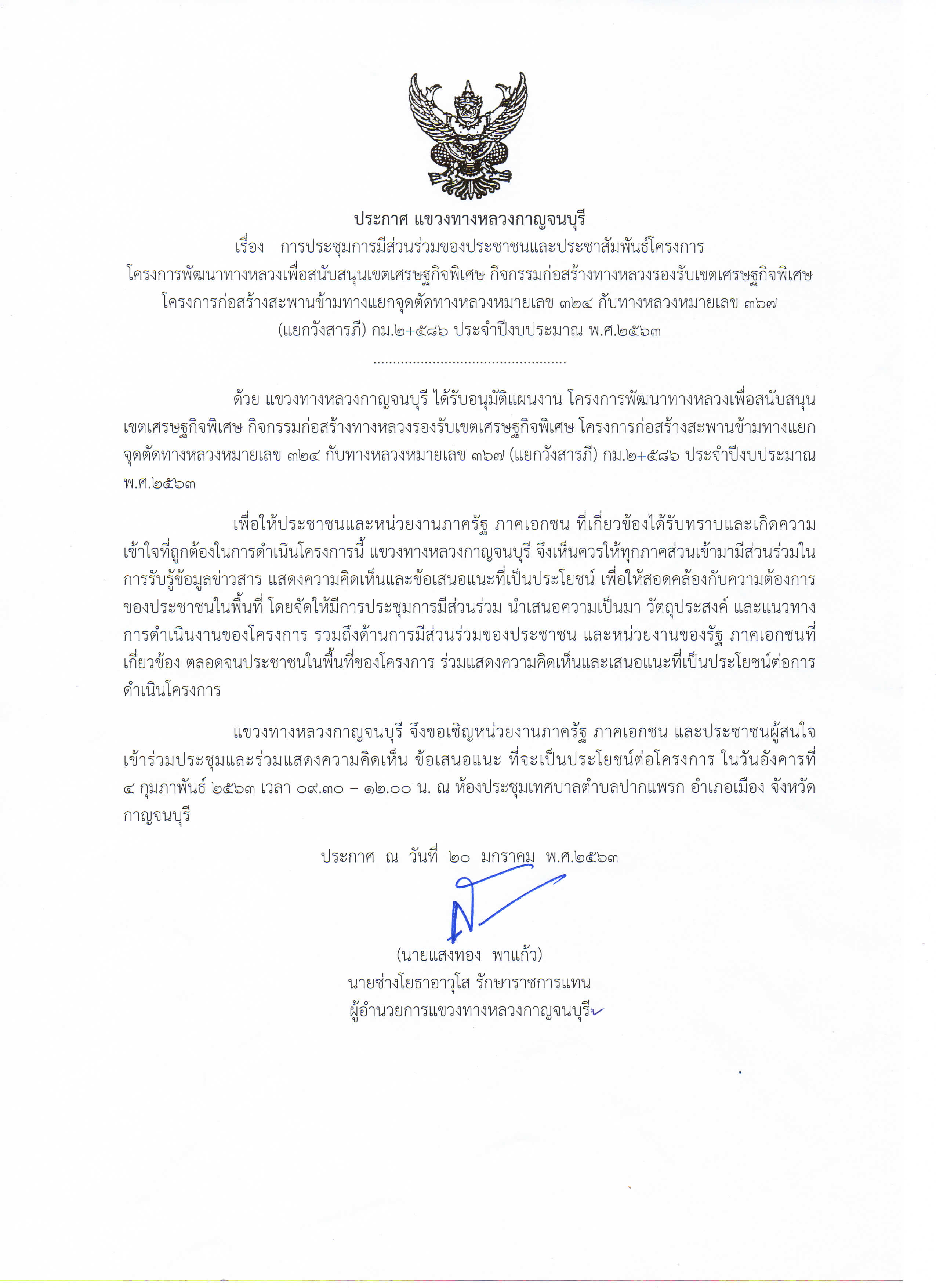 แขวงทางหลวงกาญจนบุรี จึงขอเชิญหน่วยงานภาครัฐ ภาคเอกชน และประชาชนผู้สนใจ