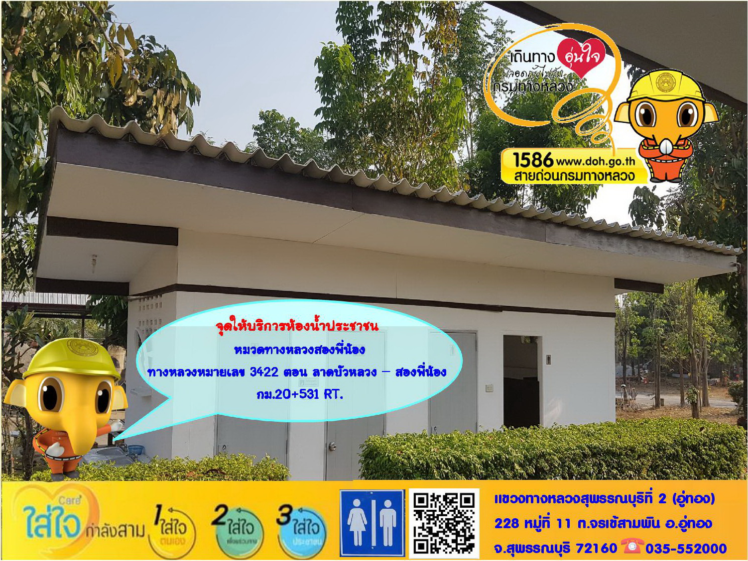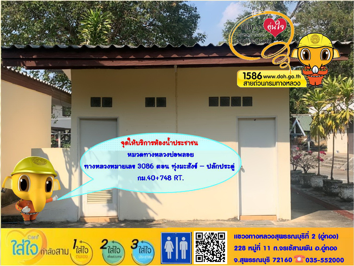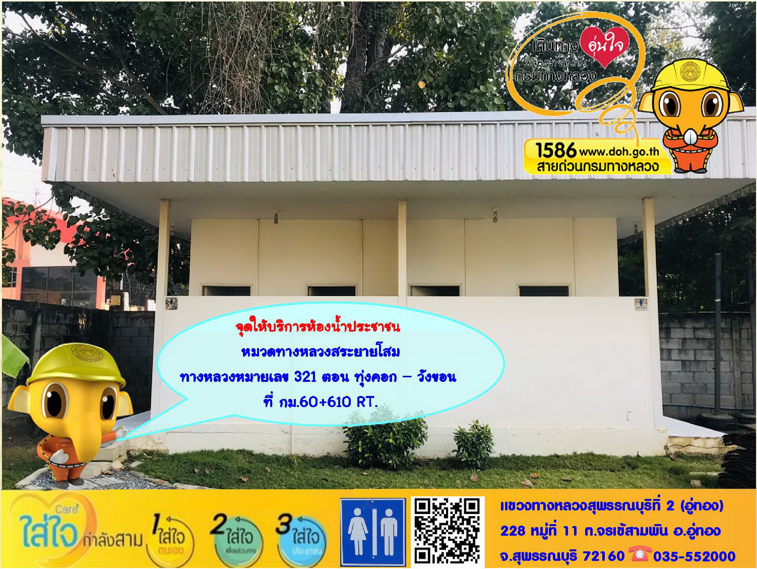 แผนที่แสดงจุดบริการประชาชนหมวดทางหลวง ของแขวงทางหลวงสุพรรณบุรีที่ 2 (อู่ทอง) เพื่ออำนวยความสะดวกและรองรับการท่องเที่ยวของประชาชนในช่วงเทศกาลปีใหม่ 2563