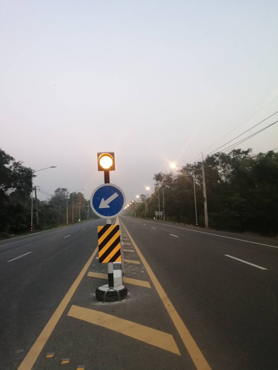 งานติดตั้งแบริเออร์และป้ายจราจรกระพริบพลังงานแสงอาทิตย์