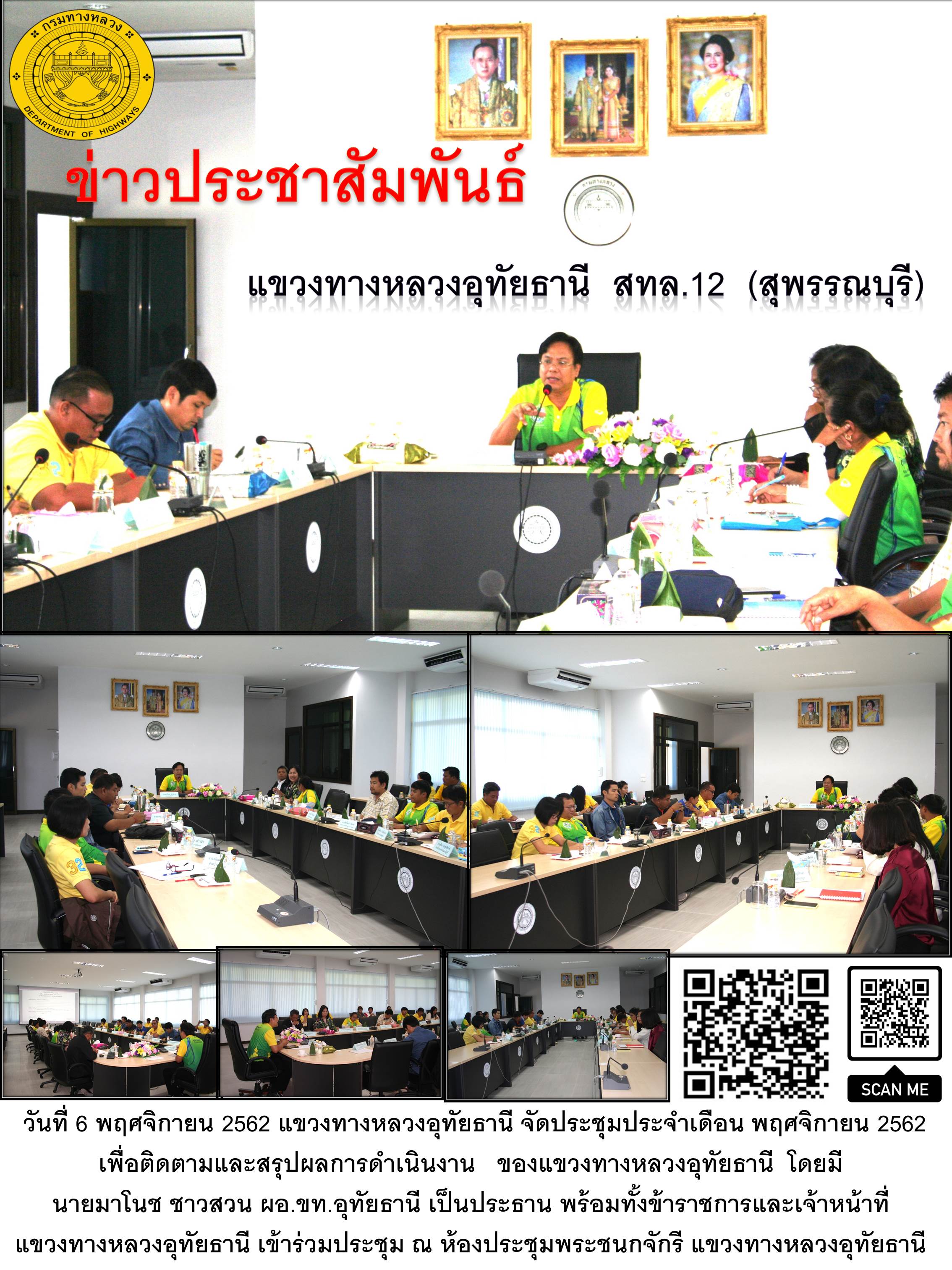 ประชุมประจำเดือน พฤศจิกายน 2562 เพื่อติดตามและสรุปผลการดำเนินงาน ของแขวงทางหลวงอุทัยธานี
