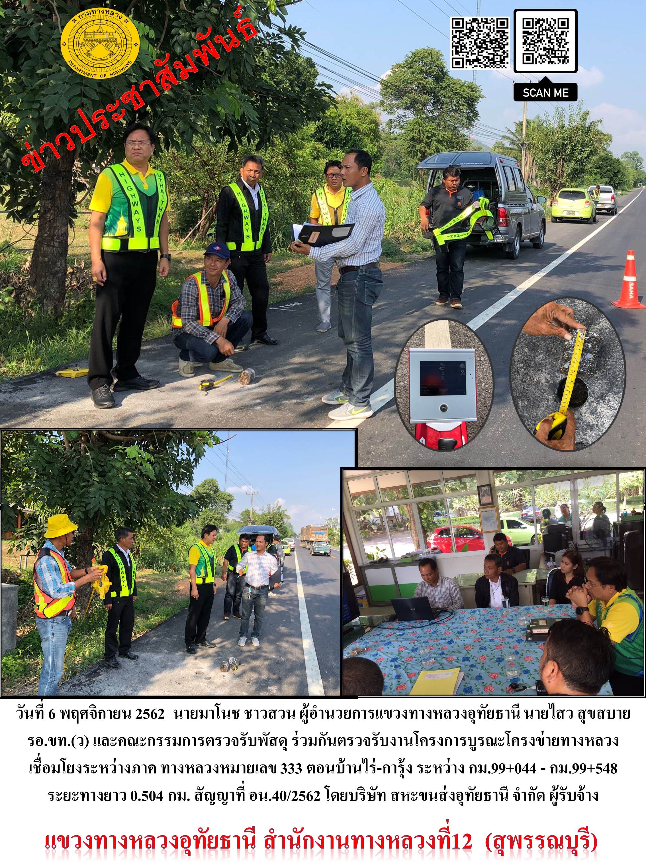 ตรวจรับงานโครงการบูรณะโครงข่ายทางหลวงเชื่อมโยงระหว่างภาค ทางหลวงหมายเลข 333 ตอนบ้านไร่-การุ้ง ระหว่าง กม.99+044 - กม.99+548 ระยะทางยาว 0.504 กม