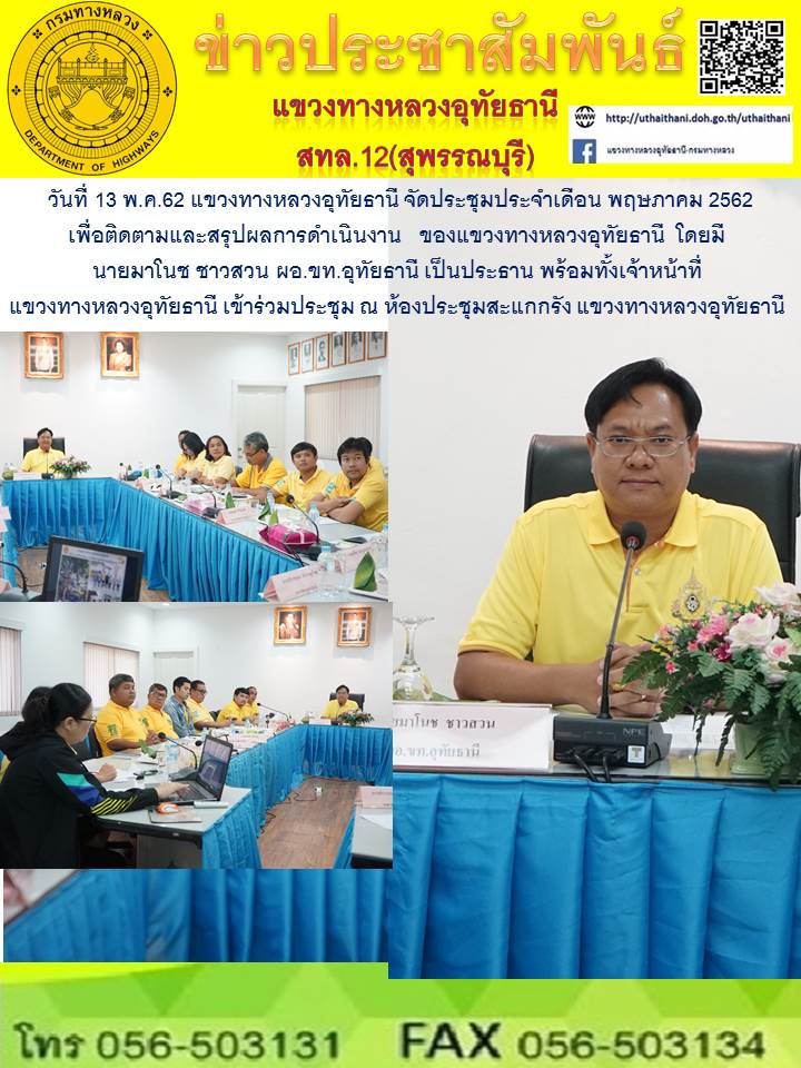 ประชุมประจำเดือน พฤศจิกายน 2562 เพื่อติดตามและสรุปผลการดำเนินงาน ของแขวงทางหลวงอุทัยธานี