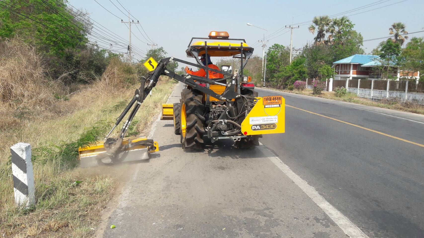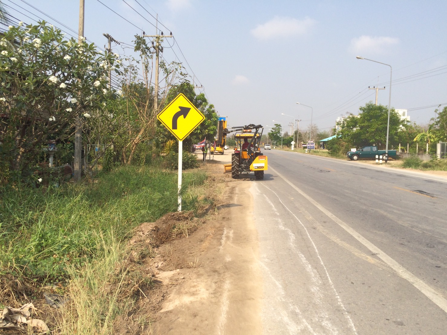 นำรถฟาร์มแทรคเตอร์ติดเครื่องตัดหญ้าบริเวณขอบไหล่ทาง ทางหลวงหมายเลข 3221 ตอน อุทัยธานี - ทัพทัน ระหว่าง กม.1+300 - 15+303 LT./RT.