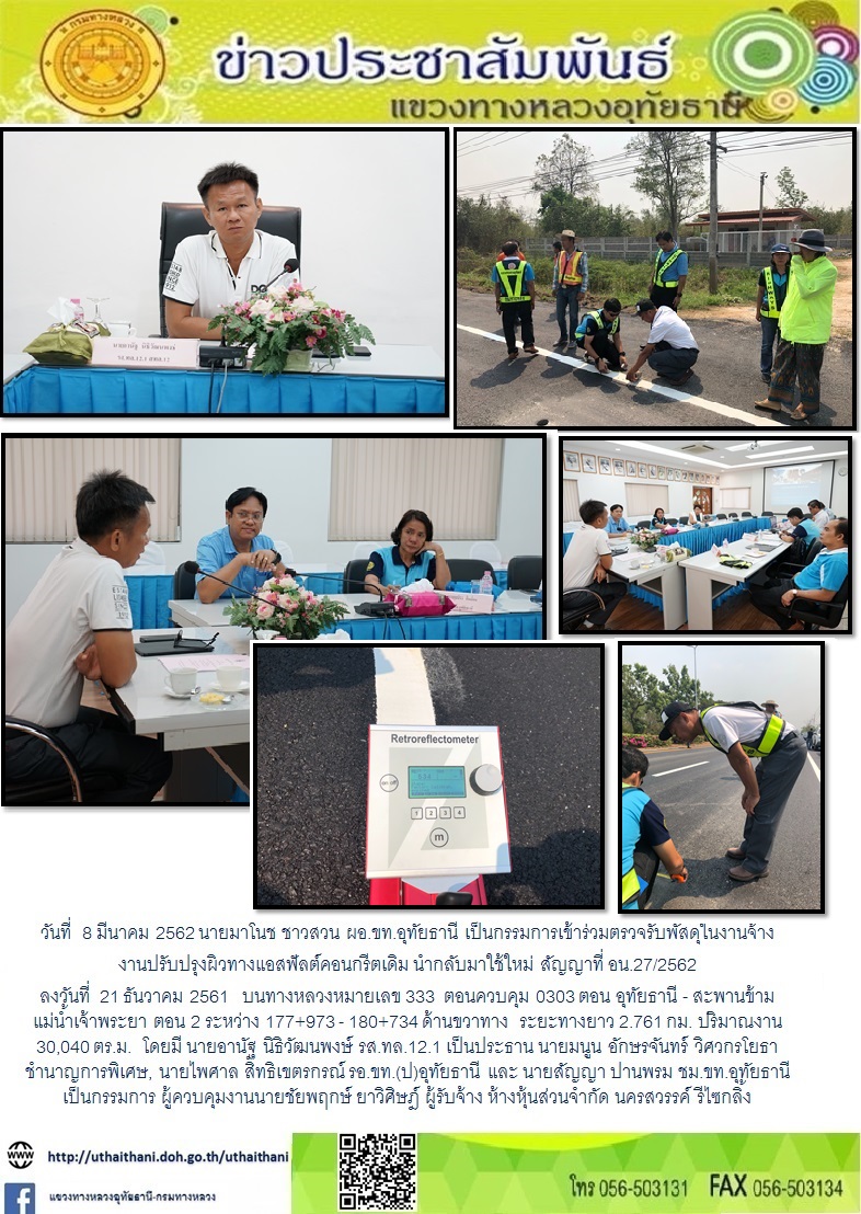 ตรวจรับงานโครงการบูรณะโครงข่ายทางหลวงเชื่อมโยงระหว่างภาค ทางหลวงหมายเลข 333 ตอนบ้านไร่-การุ้ง ระหว่าง กม.99+044 - กม.99+548 ระยะทางยาว 0.504 กม