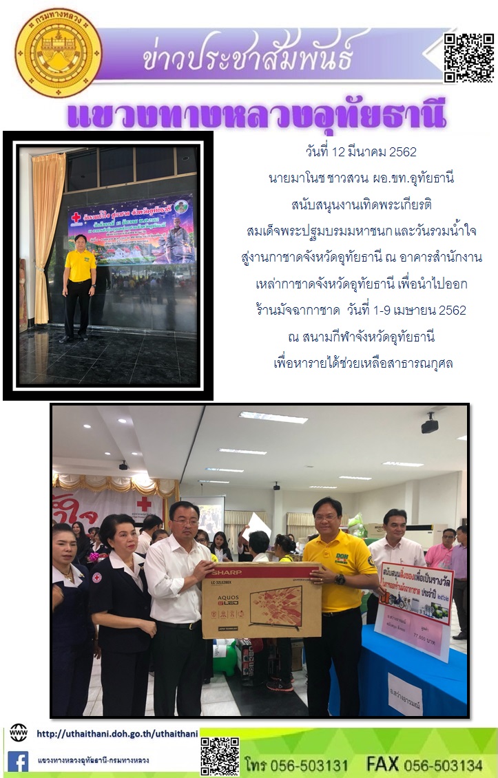 สนับสนุนงานเทิดพระเกียรติสมเด็จพระปฐมบรมมหาชนก และวันรวมน้ำใจสู่งานกาชาดจังหวัดอุทัยธานี