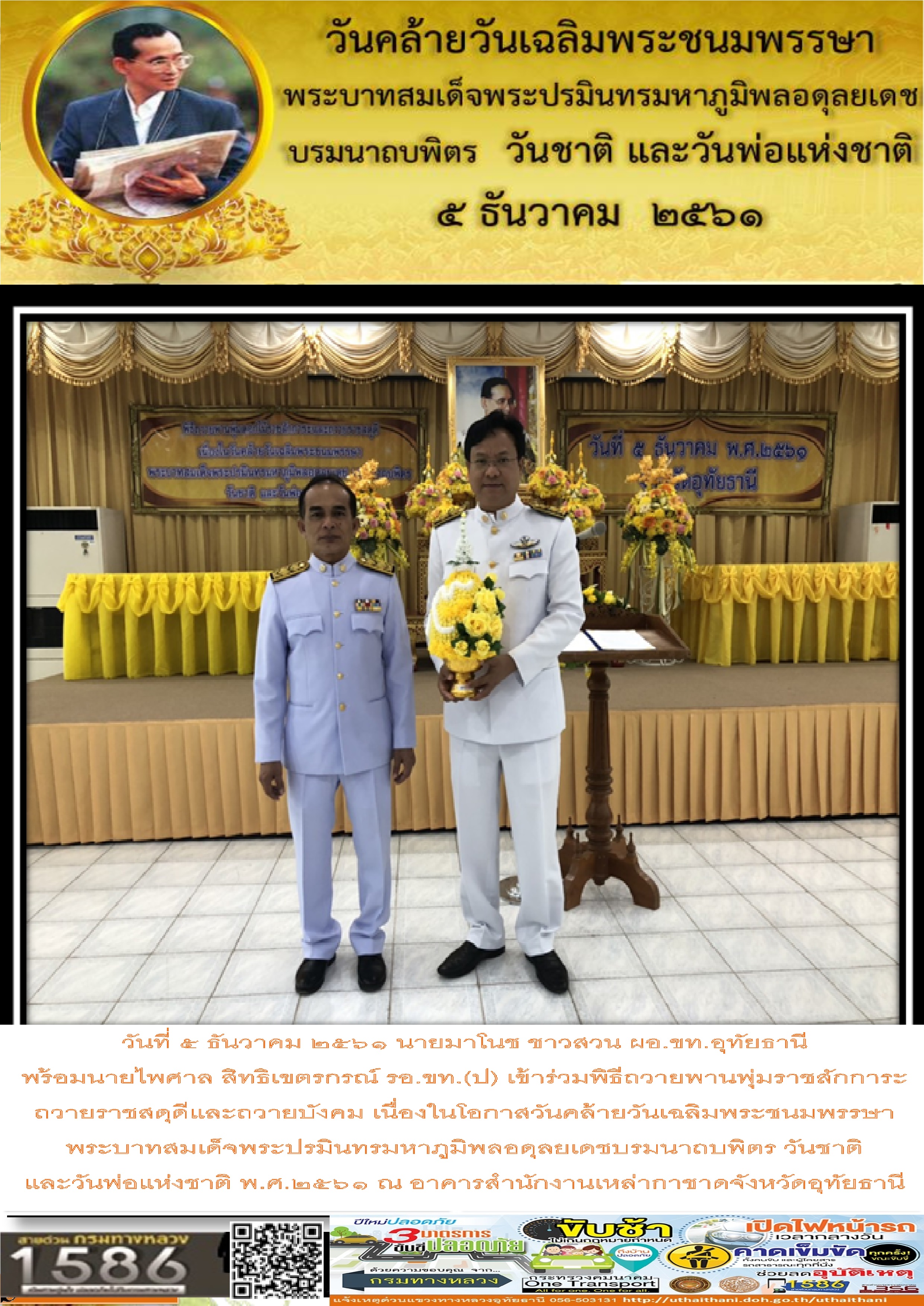 ร่วมพิธีถวายพานพุ่มราชสักการะถวายราชสดุดีและถวายบังคมเนื่องในโอกาสวันคล้ายวันเฉลิมพระชนมพรรษาพระบาทสมเด็จพระปรมินทรมหาภูมิพลอดุลยเดช บรมนาถบพิตร