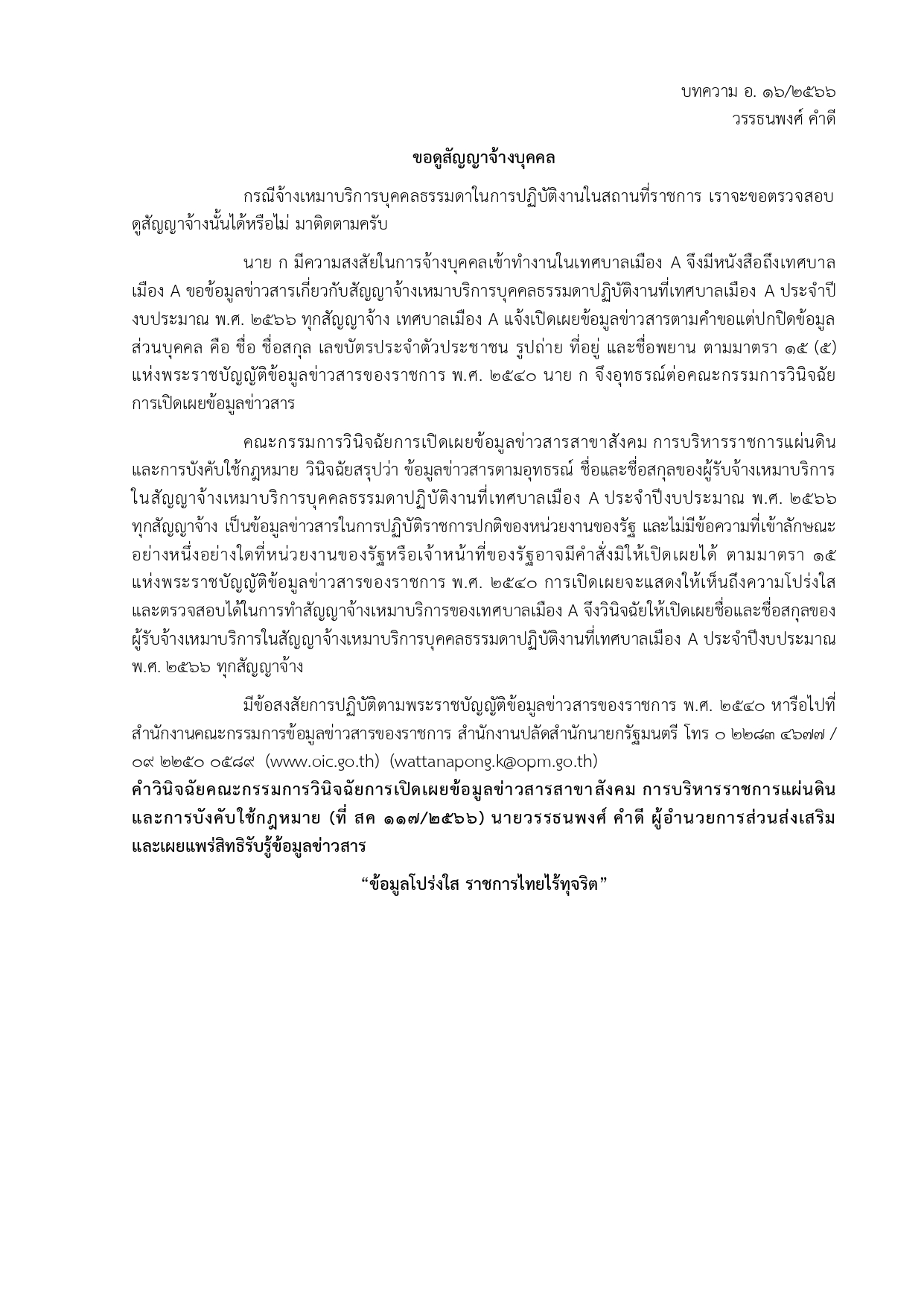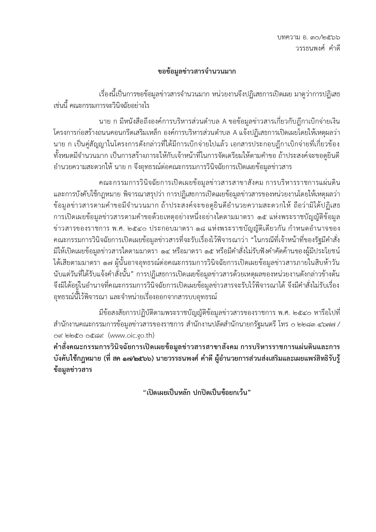 เอกสารเผยแพร่ความรู้เกี่ยวกับพระราชบัญญัติข้อมูลข่าวสารของราชการ พ.ศ. 2540