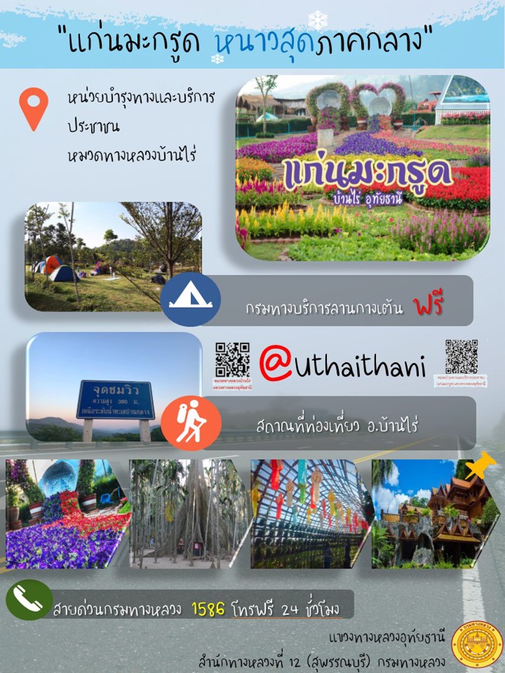 จุดบริการกางเต็นท์สำหรับประชาชนในบริเวณหมวดทางหลวงในสังกัดแขวงทางหลวงอุทัยธานี ช่วงเทศกาลปีใหม่ 2563