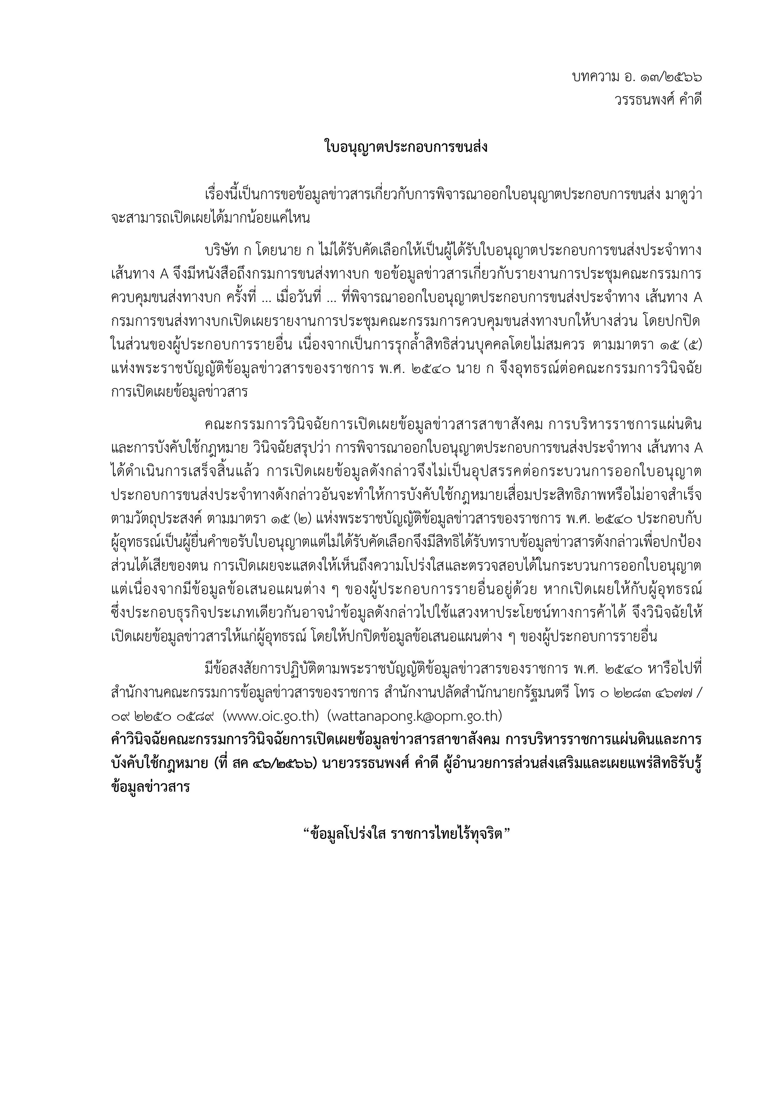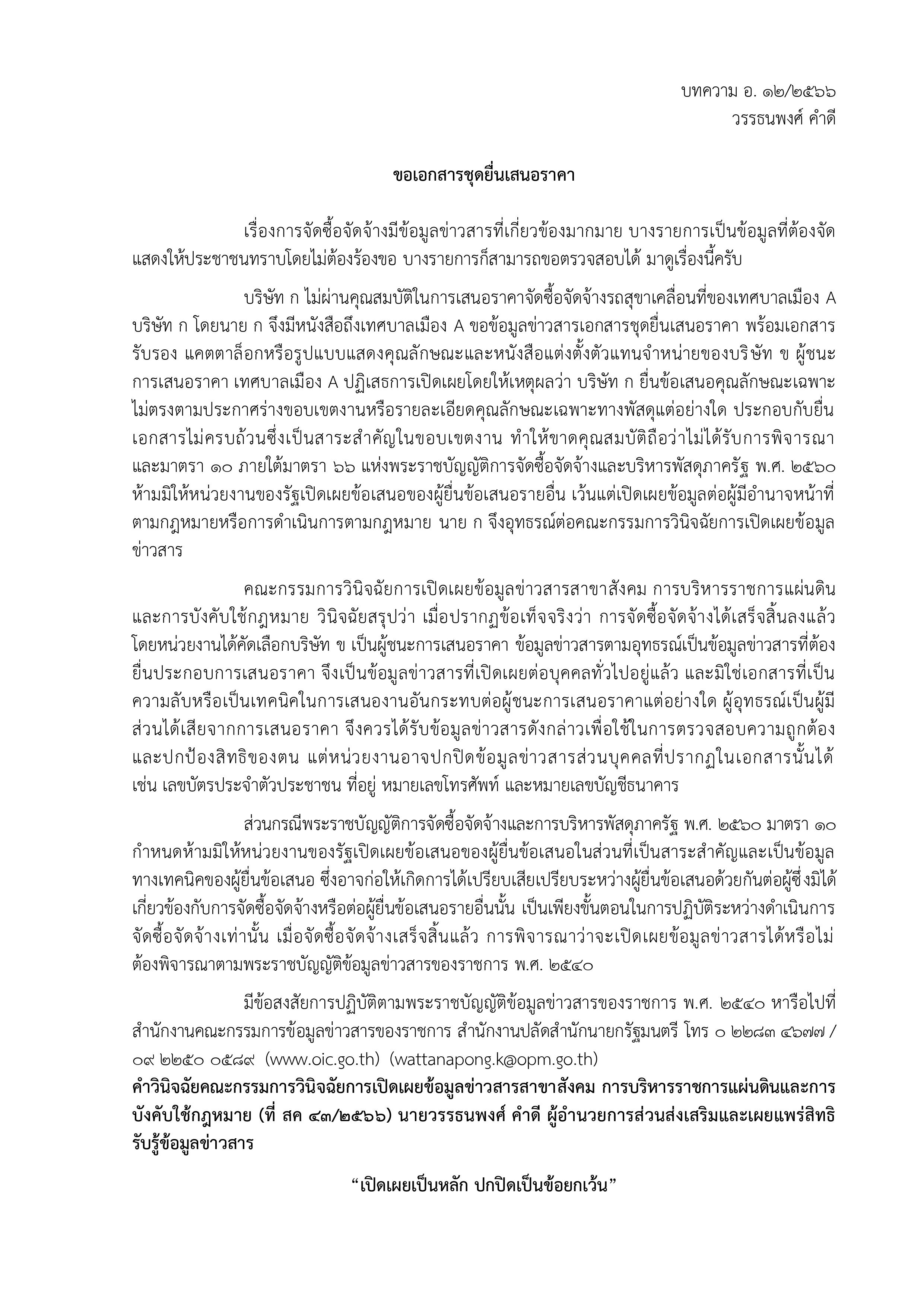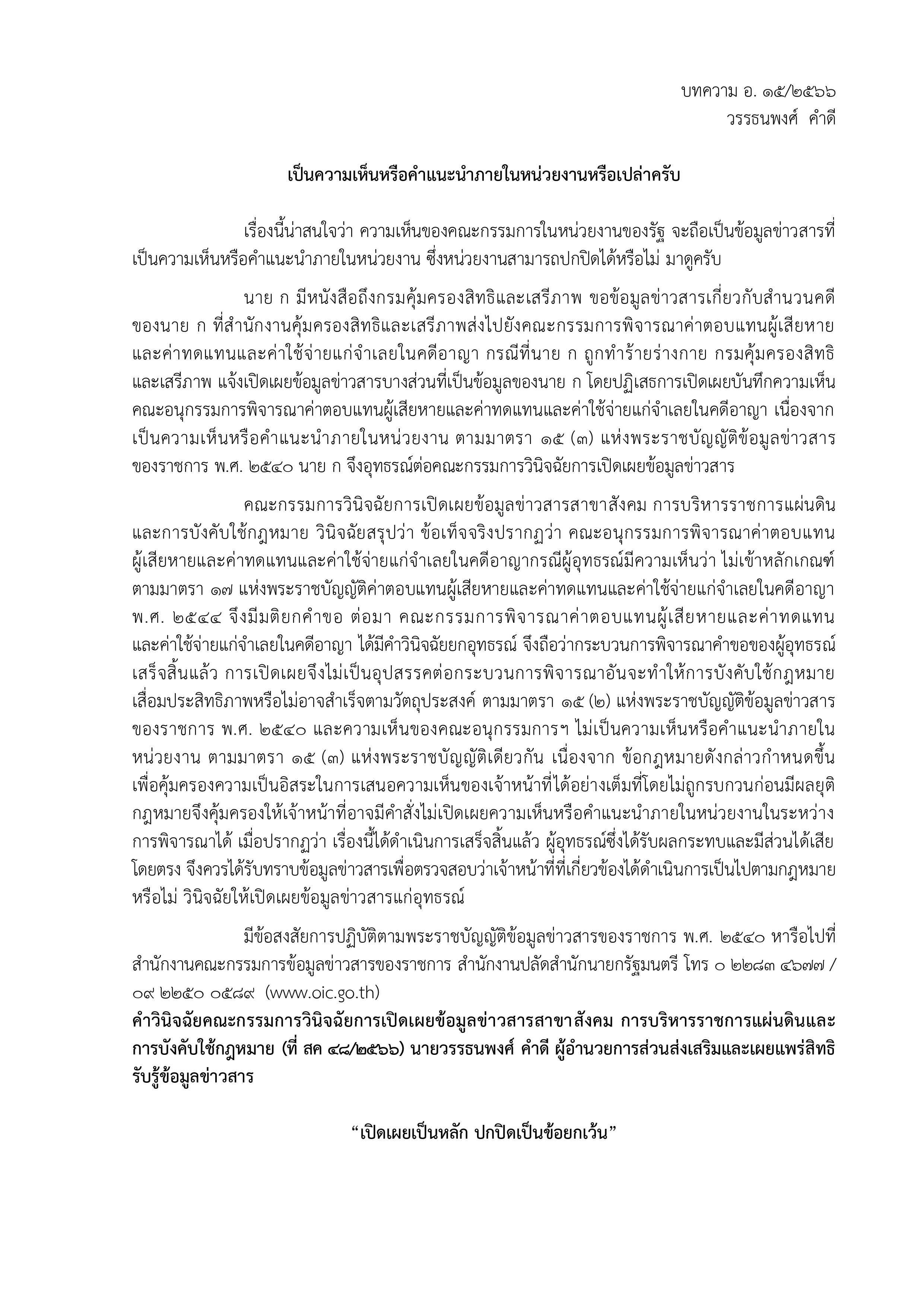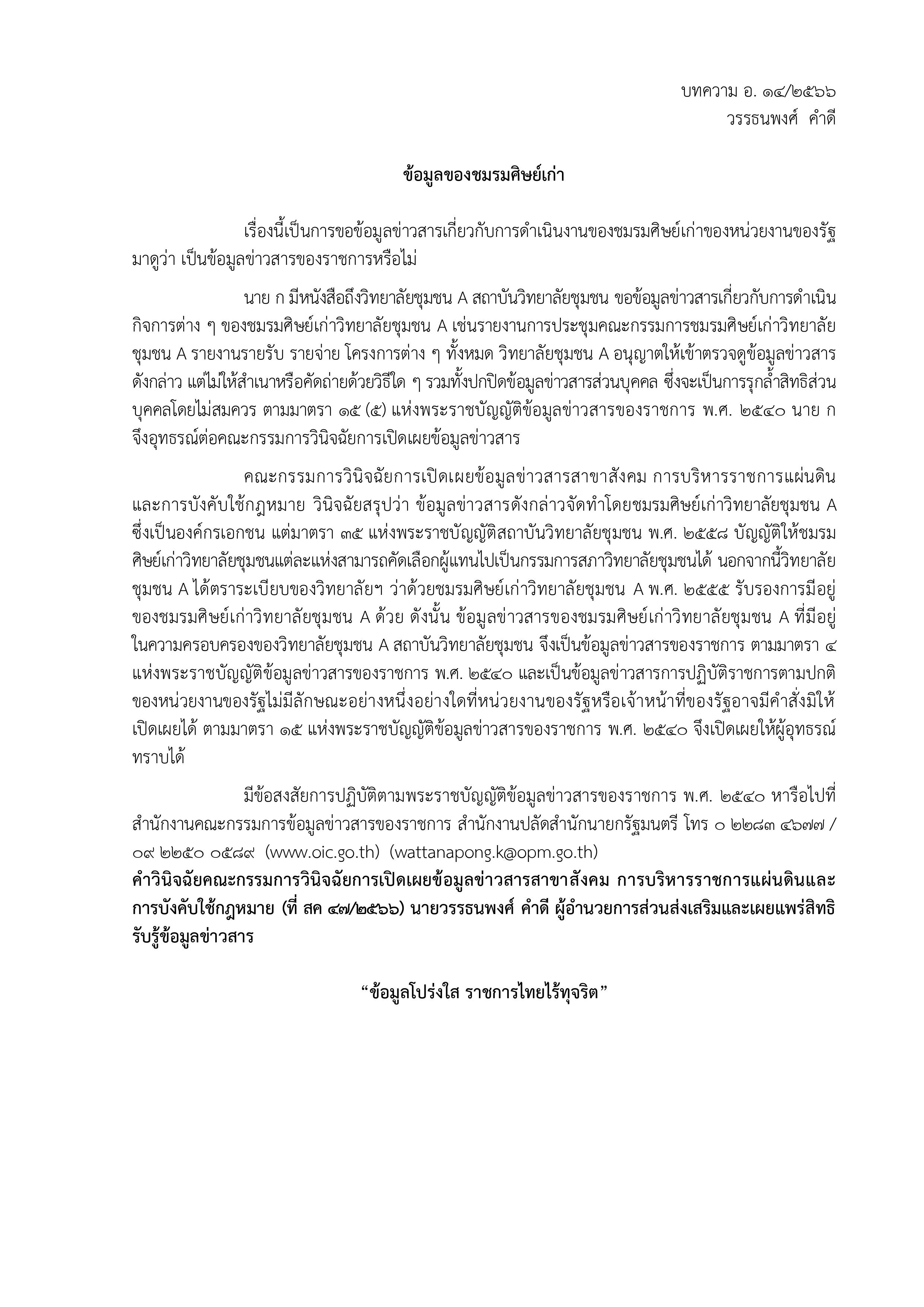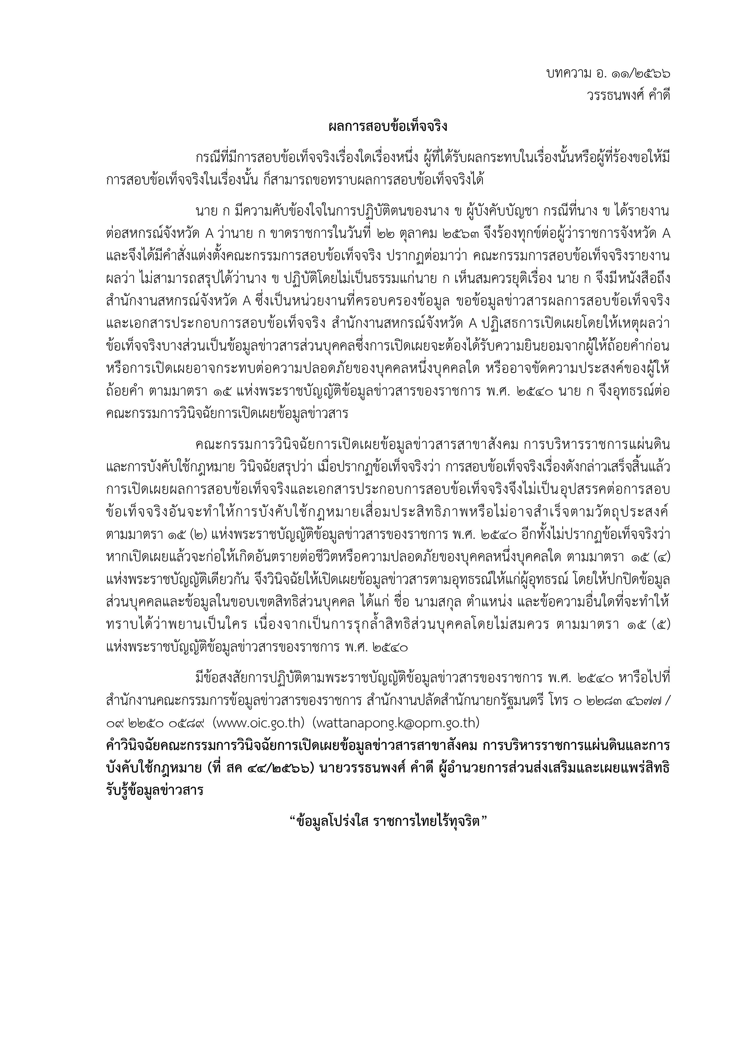 บทความสรุปประเด็นคำวินิจฉัยของคณะกรรมการวินิจฉัยการเปิดเผยข้อมูลข่าวสารและประเด็นข้อหารือ ความรู้เกี่ยวกับพระราชบัญญัติข้อมูลข่าวสารของราชการพ.ศ.2540 เพื่อประโยชน์ใการนำไปใช้ประกอบการปฏิบัติหน้าที่ในการเปิดเผยข้อมูลข่าวสารต่าง ๆ ตาม พ.ร.บ.ข้อมูลข่าวสารของราชการ พ.ศ.2540