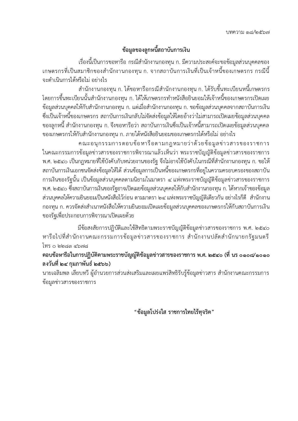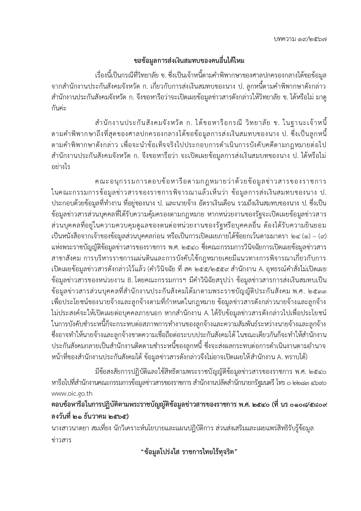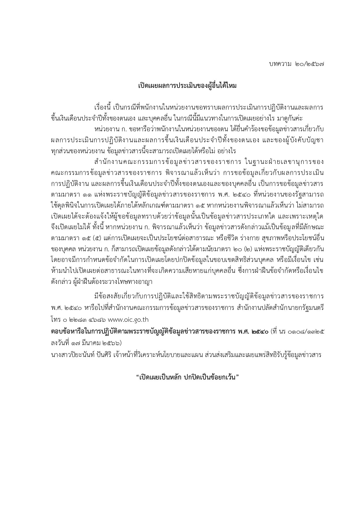 ด้วยสำนักงานปลัดสำนักนายกรัฐมนตรี โดยสำนักงานคณะกรรมการข้อมูลข่าวสารของราชการ ได้จัดทำบทความสรุปประเด็นตอบข้อหารือของหน่วยงาน เพื่อเป็นเอกสารเผยแพร่ความรู้